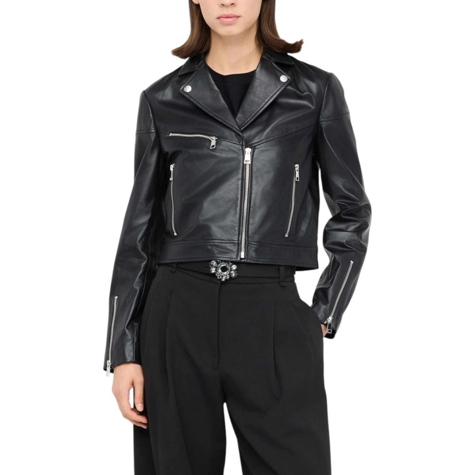 Giacca in vera pelle. Tasche con zip. Zip sui polsi. Fodera interna.