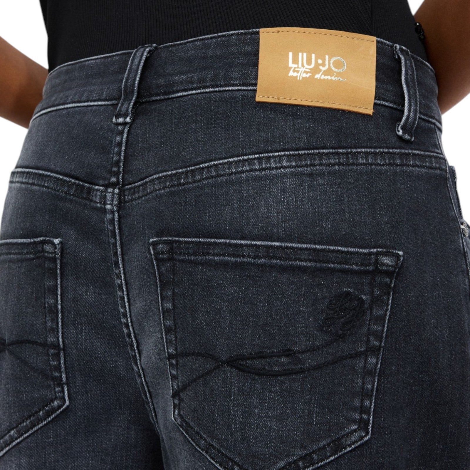 Jeans cropped carrot fit. Realizzati in denim di cotone stretch. Lavaggio used. Vita alta. Modello cinque tasche. Salpa logata. Logo LJ ricamato. Chiusura con bottone e zip coperta.