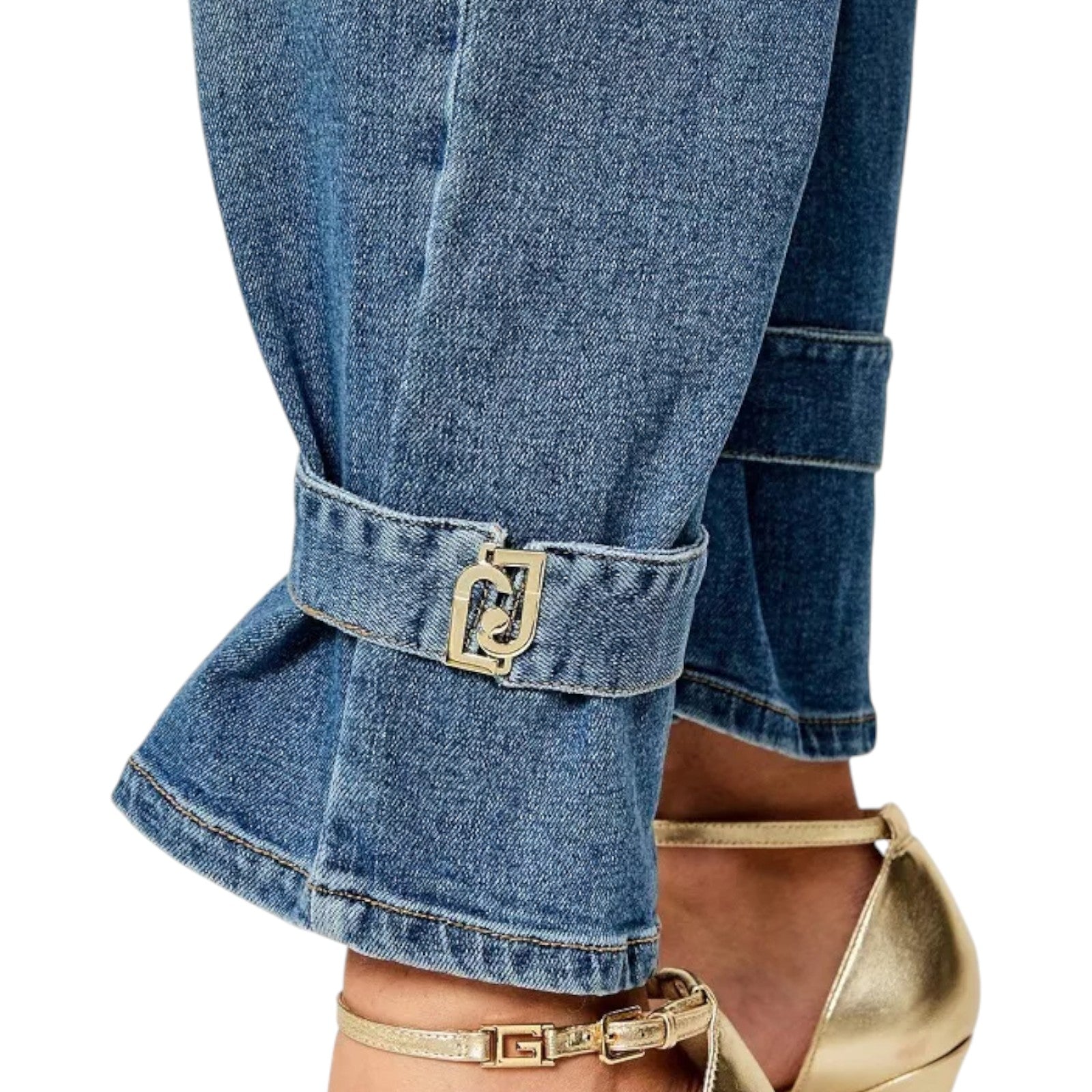 Jeans cropped carrot fit. Realizzati in denim di cotone stretch. Lavaggio used. Vita alta. Modello cinque tasche. Logo in metallo sul retro. Cinturini con logo LJ in metallo al fondo. Chiusura con bottone e zip coperta.
