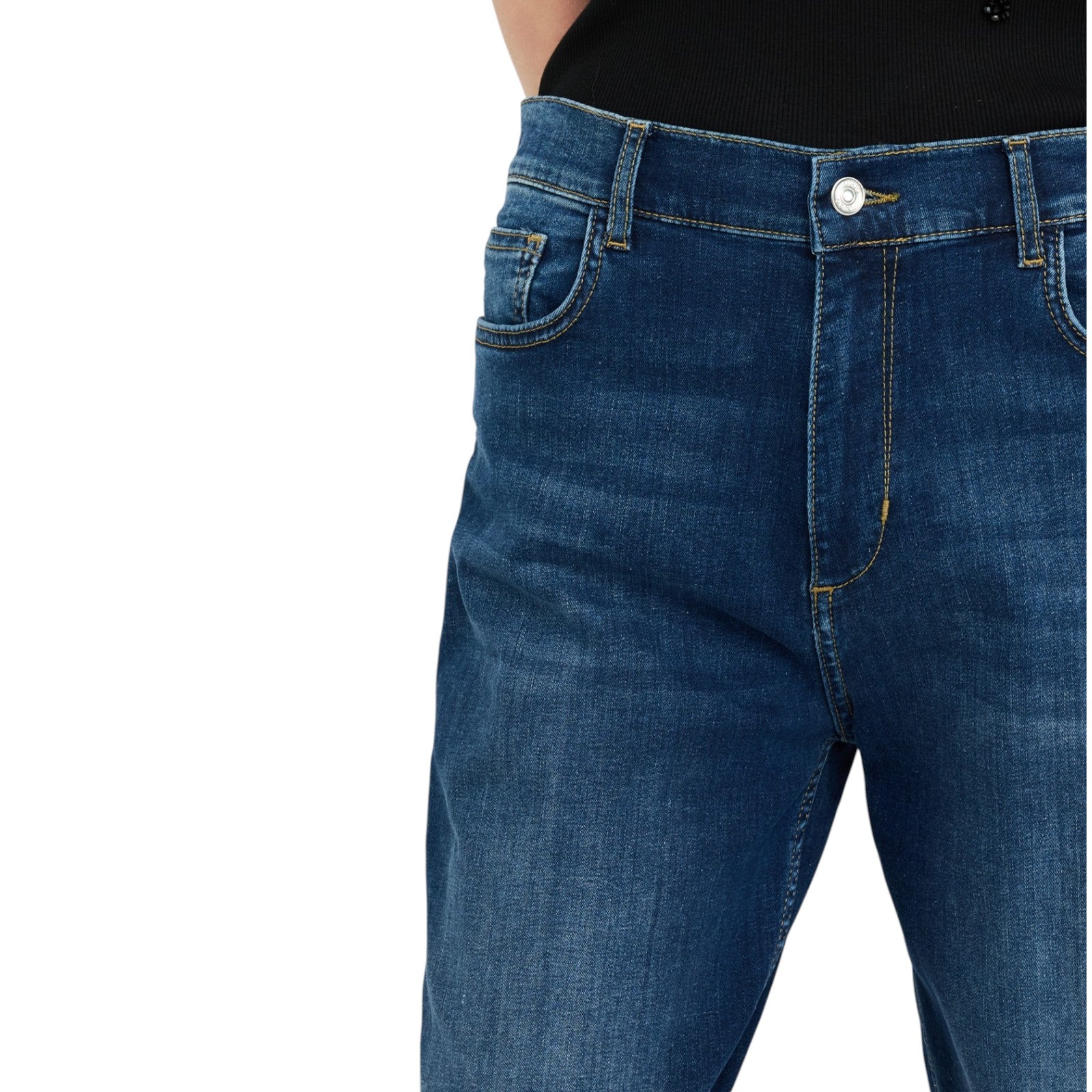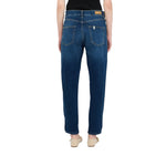 Jeans cropped carrot fit. Realizzati in denim di cotone stretch. Lavaggio used. Vita alta. Modello cinque tasche. Salpa logata. Logo in metallo sul retro. Risvolto al fondo. Chiusura con bottone e zip coperta.