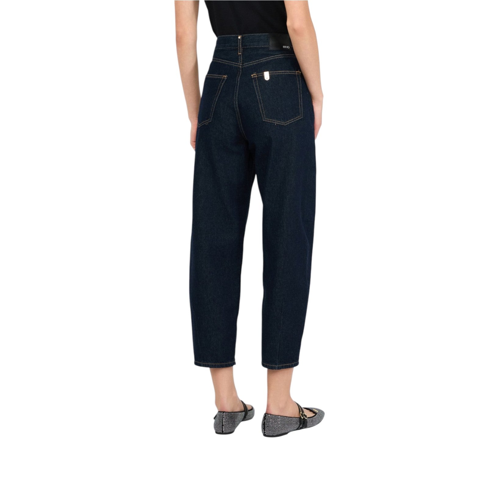 Jeans cropped carrot fit. Realizzati in denim di misto cotone. Vita alta. Modello cinque tasche. Salpa logata. Logo in metallo sul retro. Chiusura con bottone e zip coperta. La modella è alta 178 cm e indossa la taglia 27.