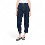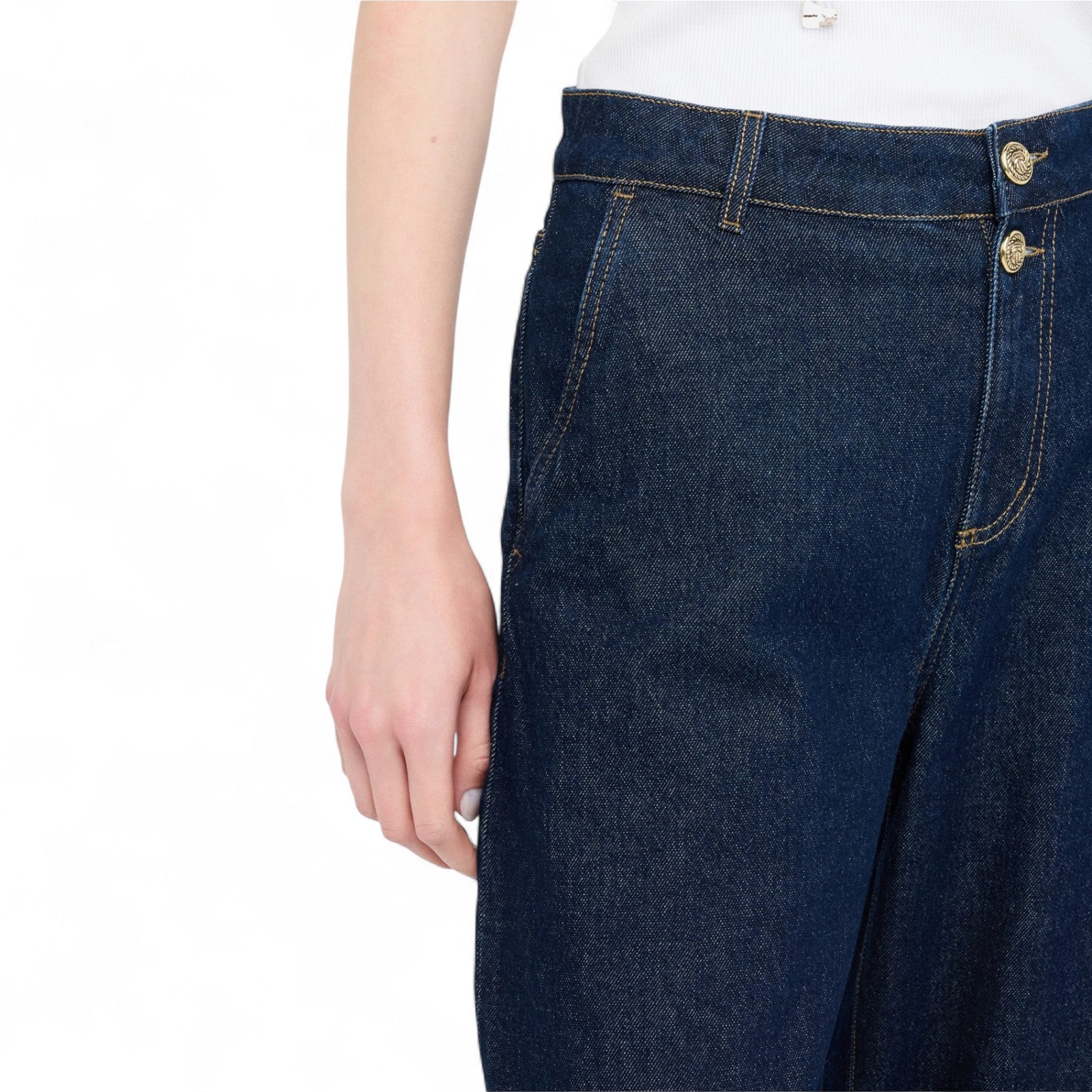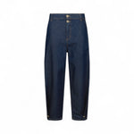 Jeans cropped ballon. Realizzati in denim di cotone stretch. Vita regolare. Tasche sui fianchi e sul retro. Logo in metallo sul retro. Bottoni laterali al fondo. Chiusura con bottoni e zip coperta. La modella è alta 178 cm e inossa la taglia 27.