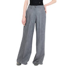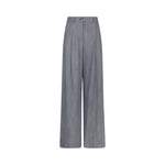 Pantaloni in denim di lyocell. Pinces e piega stirata. Vita alta. Gamba flare. Tasche sui fianchi. Tasca a filetto con bottone sul retro. Chiusura con bottone e zip nascosta.