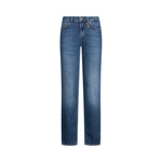Jeans in denim di cotone stretch Tagli bottom up che ridefiniscono le forme con eleganza, donando armonia e sostegno senza rinunciare al comfort Lavaggio used. Vita regolare. Gamba slim. Modello cinque tasche. Charm con pendenti LJ. Logo in metallo sul retro. Chiusura con bottone e zip coperta.