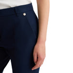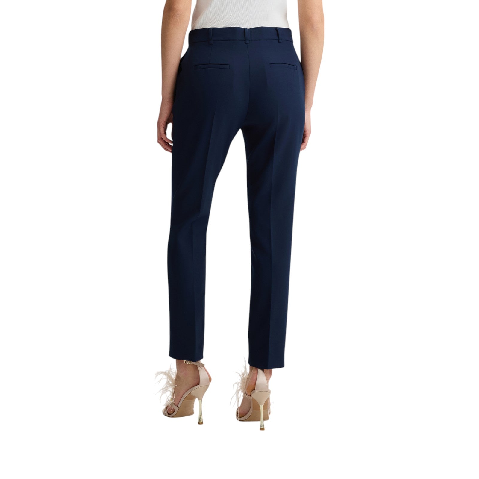 Pantaloni a sigaretta in tessuto tecnico stretch. Piega stirata. Tasche sui fianchi. Tasche a filetto sul retro. Logo in metallo. Chiusura nascosta con bottone e zip. Prodotto "Liu Jo Better".