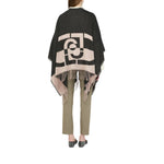 Poncho. Bordi con frange. Patch logata sul retro. Logo monogram jacquard.