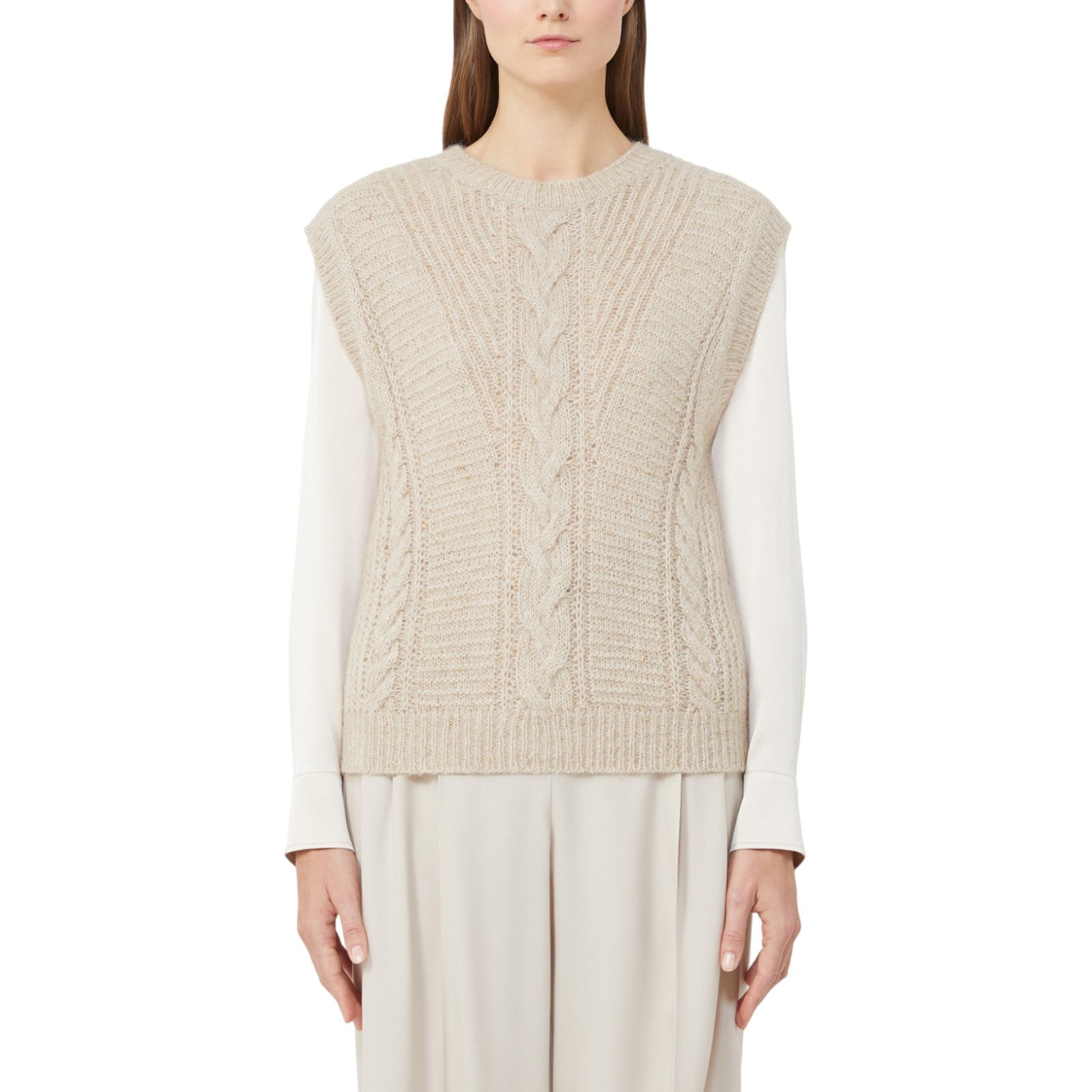 Maglia donna in lana e cachemire a trecce