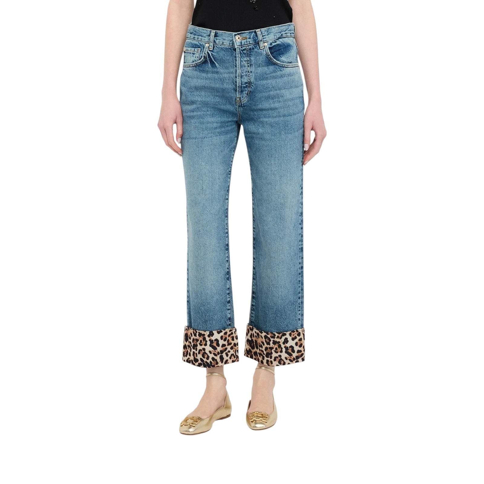 Jeans donna con risvolto animalier