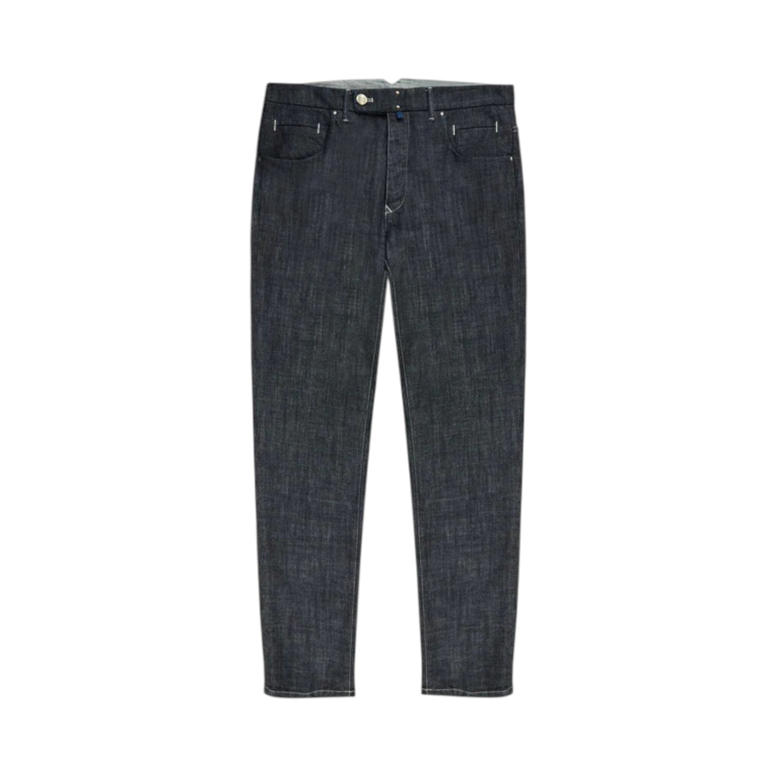 Il pantalone presenta tasche a carrettiera, doppio coin pocket, cintura con prolunga, tasche posteriori a toppa.