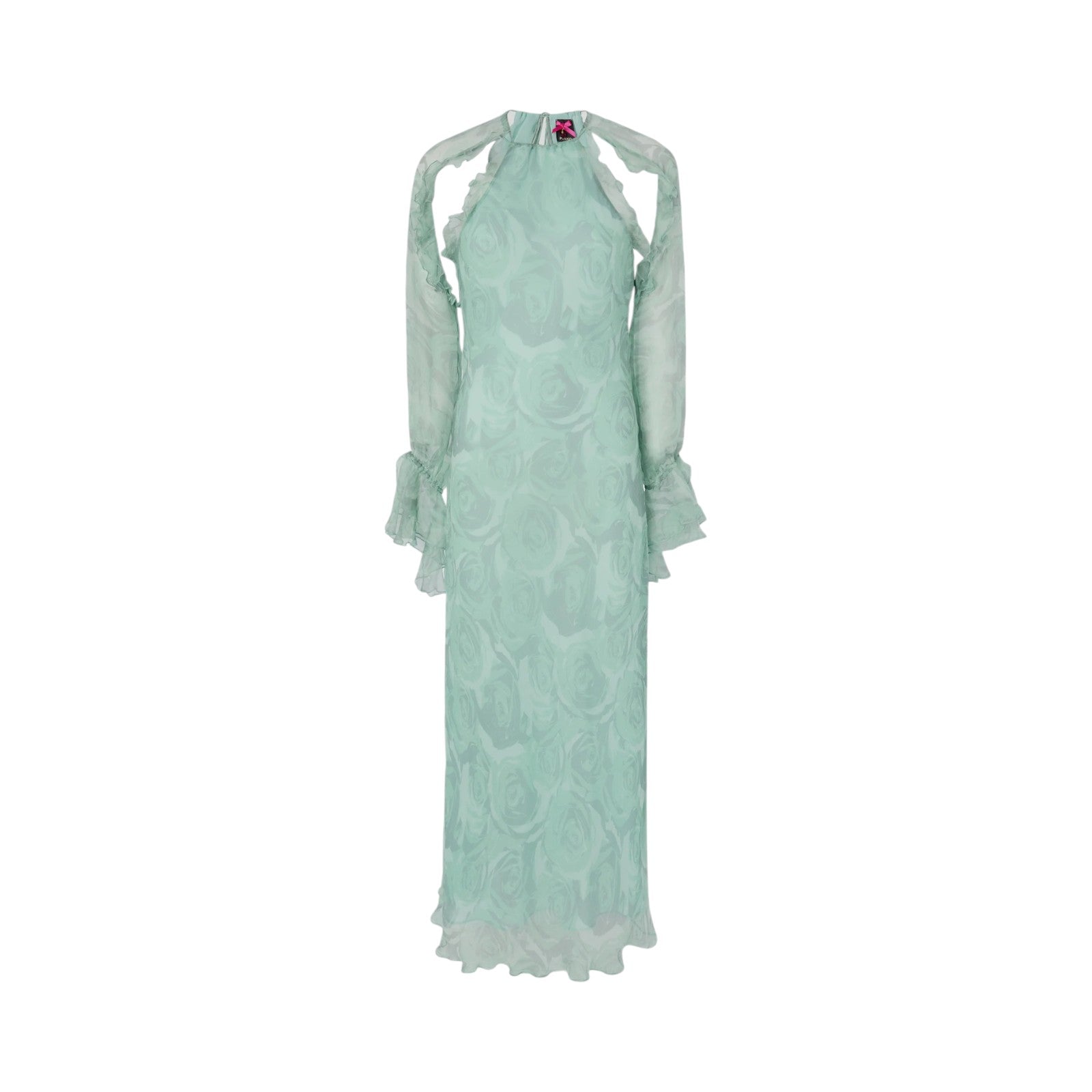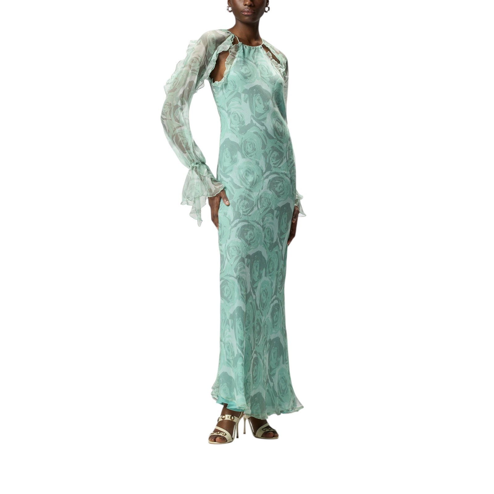 Abito donna midi in seta con stampa rose e spalle scoperte