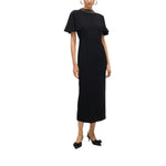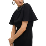 Abito elegante a taglio dritto con maniche mantello e collo arricchito da gioielli. Realizzato in tessuto morbido di alta qualità. Dotato di spacco posteriore e chiusura a cerniera invisibile.