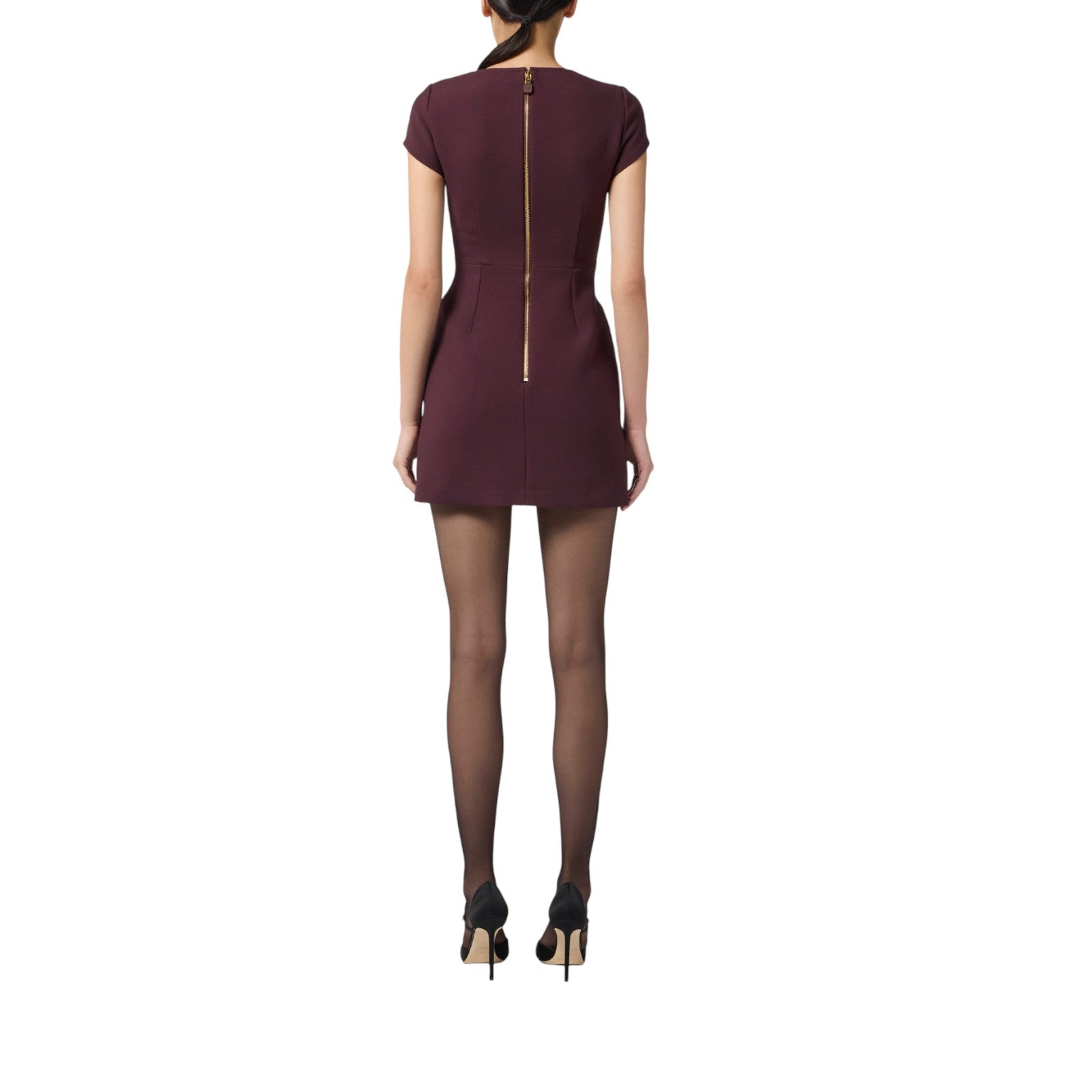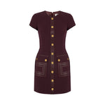 Abito in doppio crêpe dalla vestibilità slim. Il vestito ha maniche ad aletta e si distingue per i dettagli in tono che donano definizione come il cannoncino e le patch, con logo embossed e ricamate sulle tasche. I bottoni in metallo dorato decorano il davanti con note di luce.