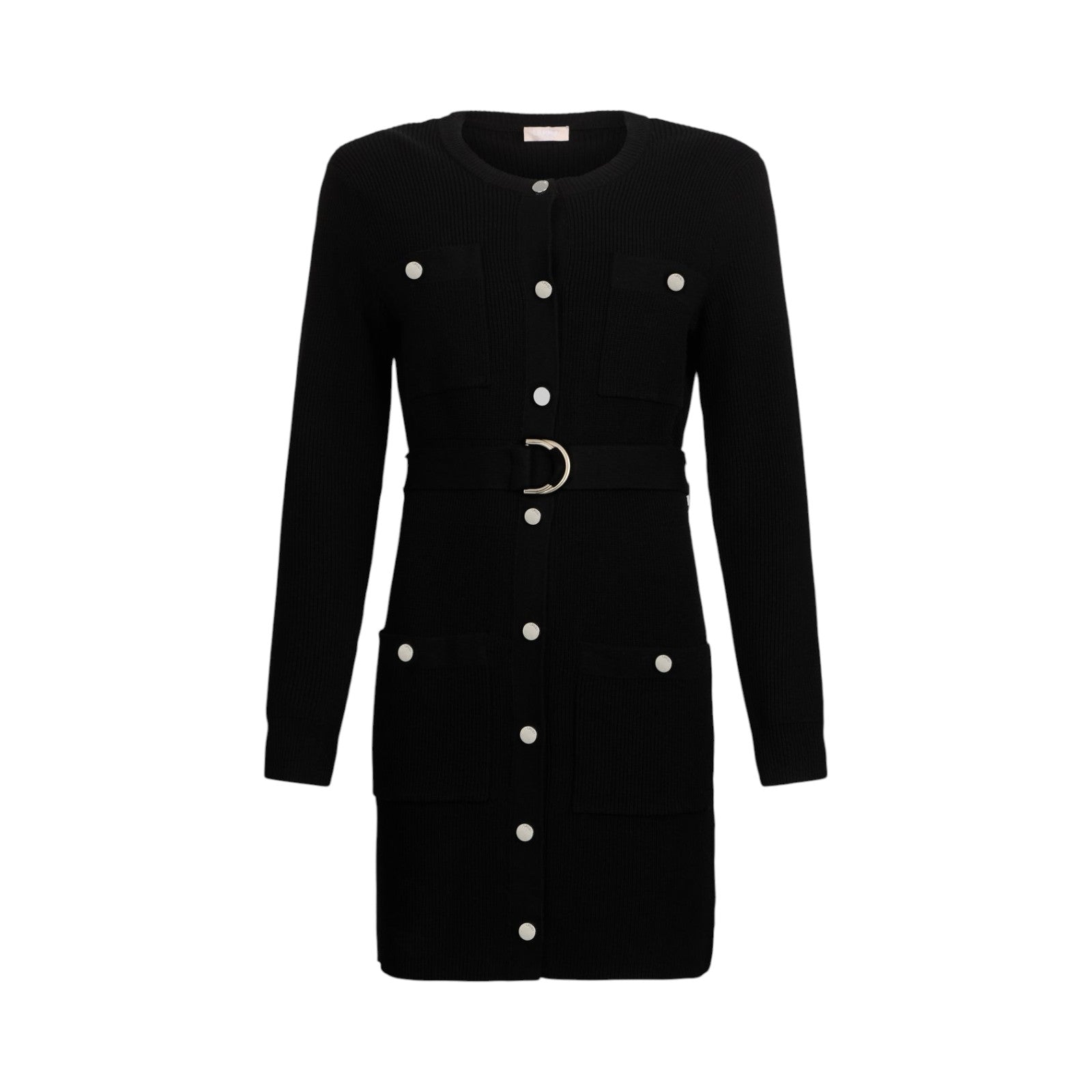 Abito corto in maglia. Filati in misto viscosa. Spalline imbottite. Comode tasche. Cintura regolabile. Prodotto "Liu Jo Better".