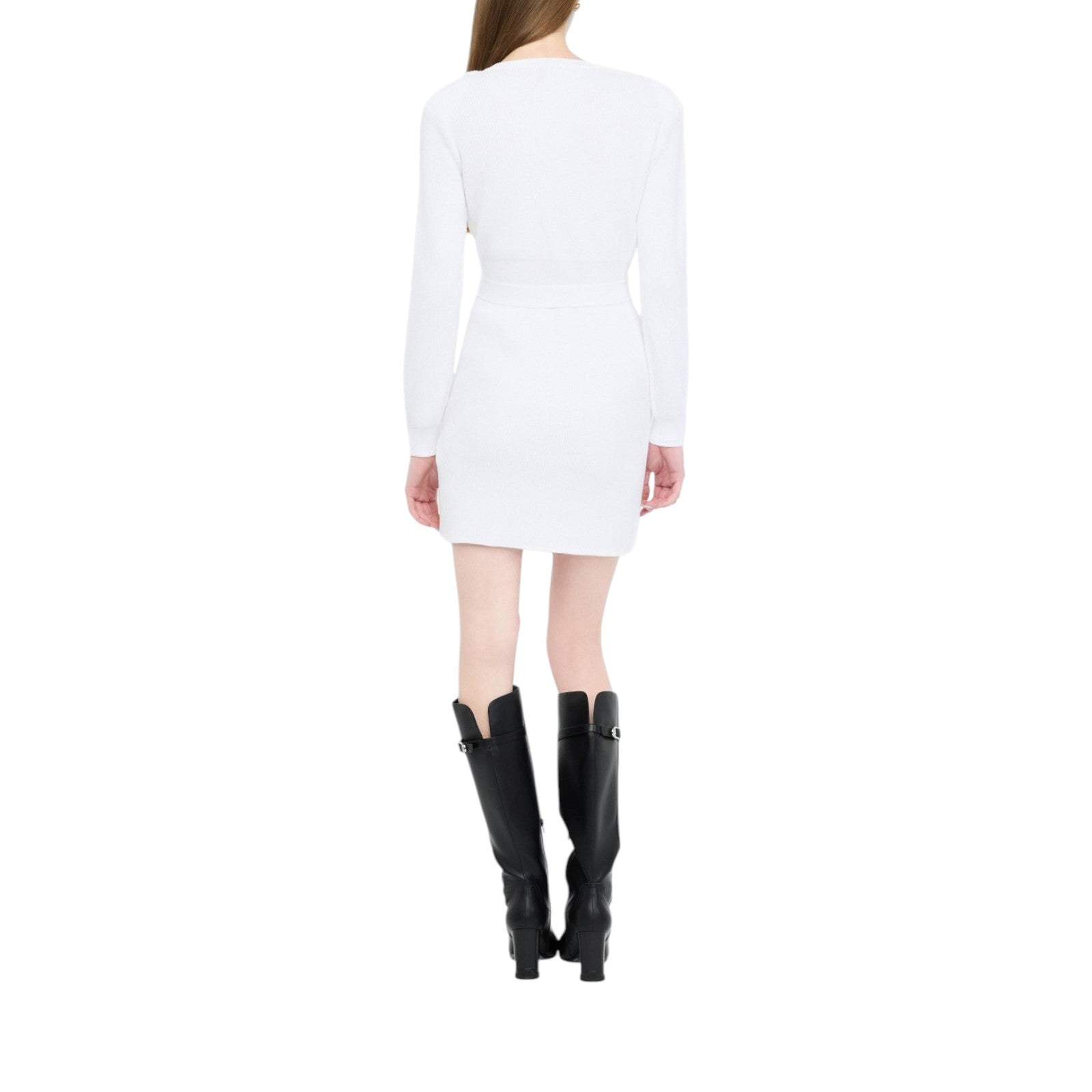 Abito corto in maglia. Filati in misto viscosa. Spalline imbottite. Comode tasche. Cintura regolabile con fibbia D-ring. Prodotto "Liu Jo Better".