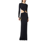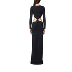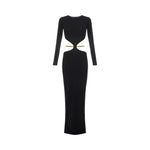 Abito da sera in maglia dalla vestibilità slim. Il vestito ha girocollo, maniche lunghe e si distingue per i tagli cut-out in vita che rivelano i fianchi, impreziositi dalla cintura in trama snake amovibile e flessibile per sperimentare più opzioni di styling.