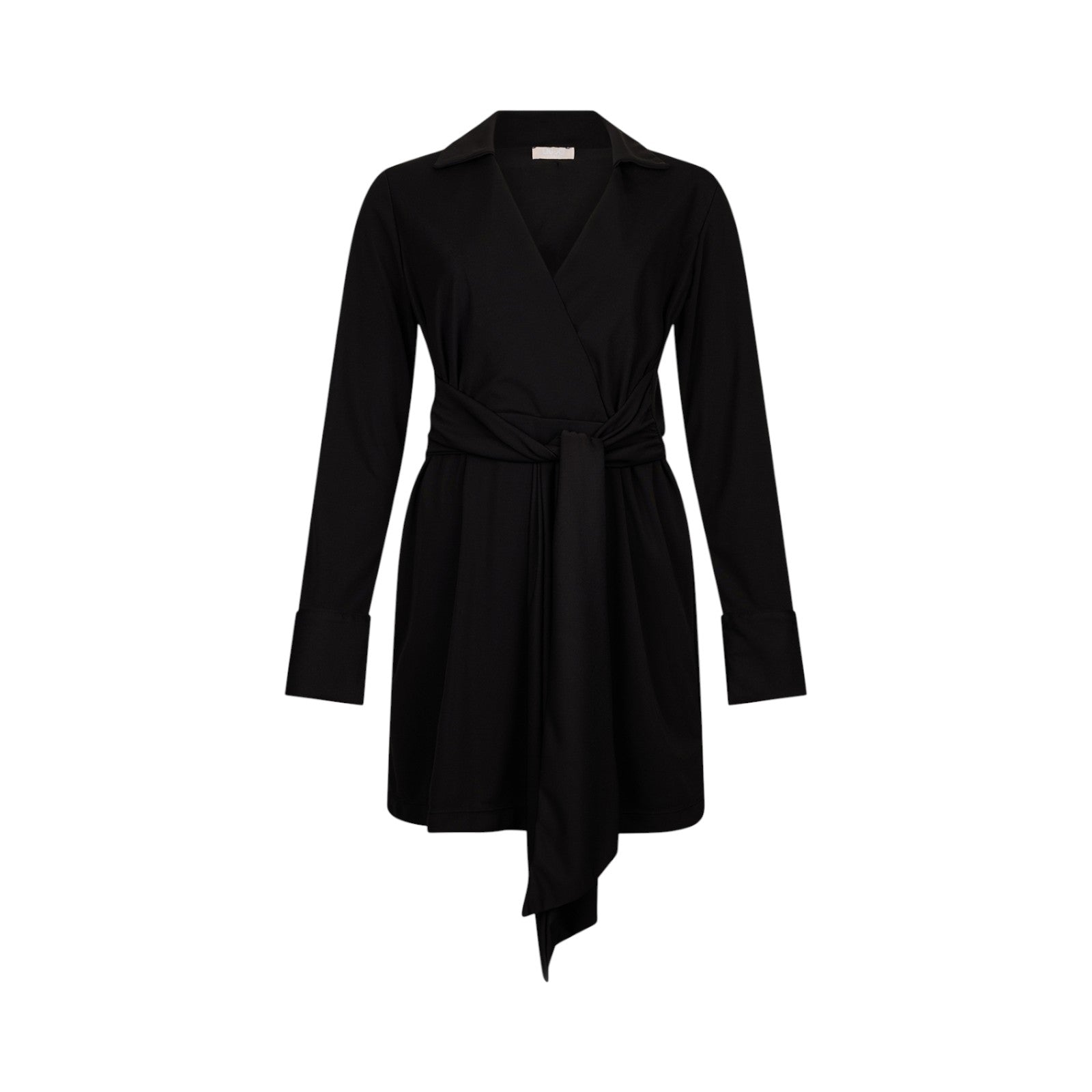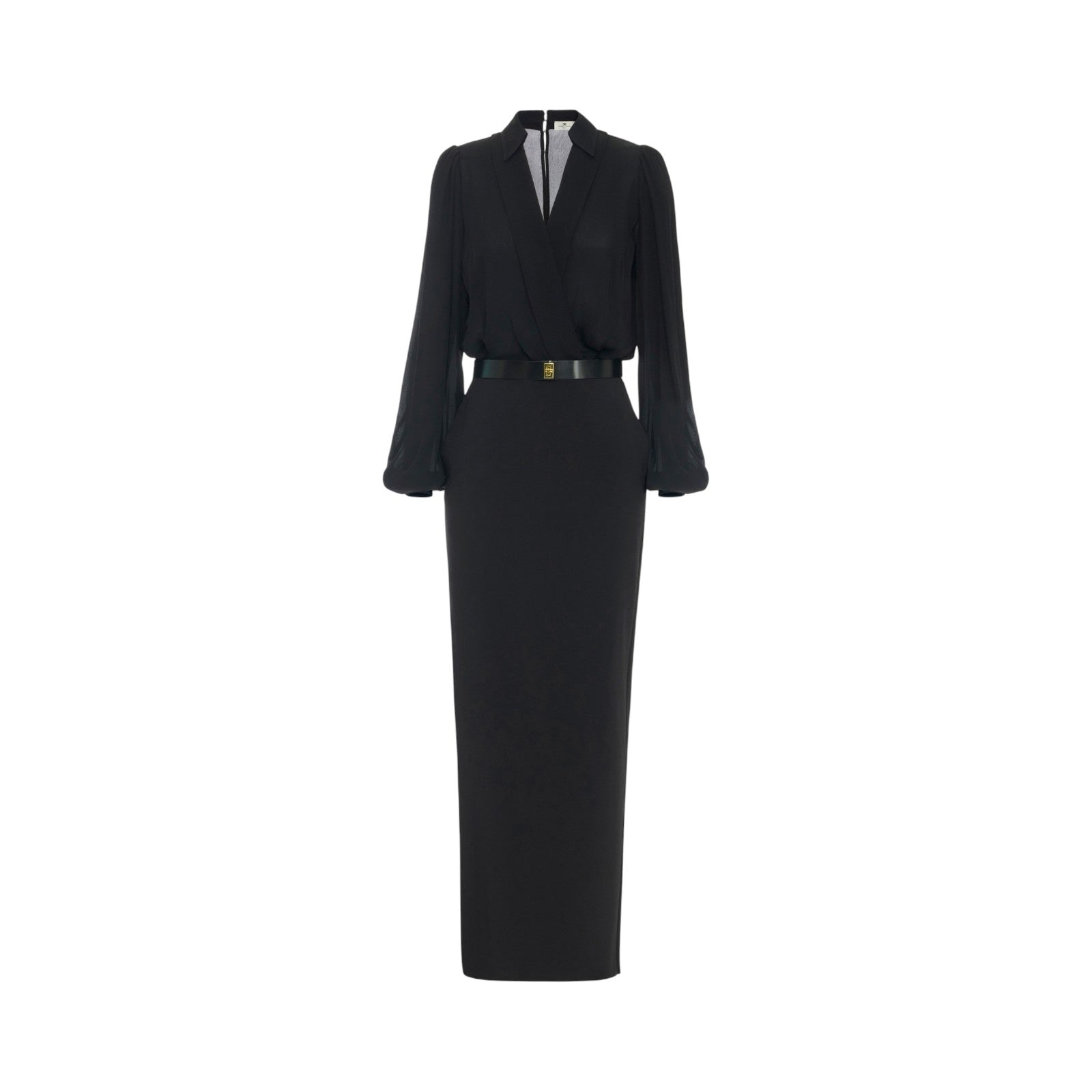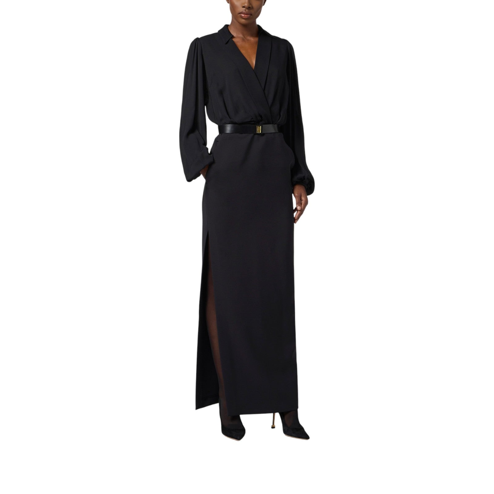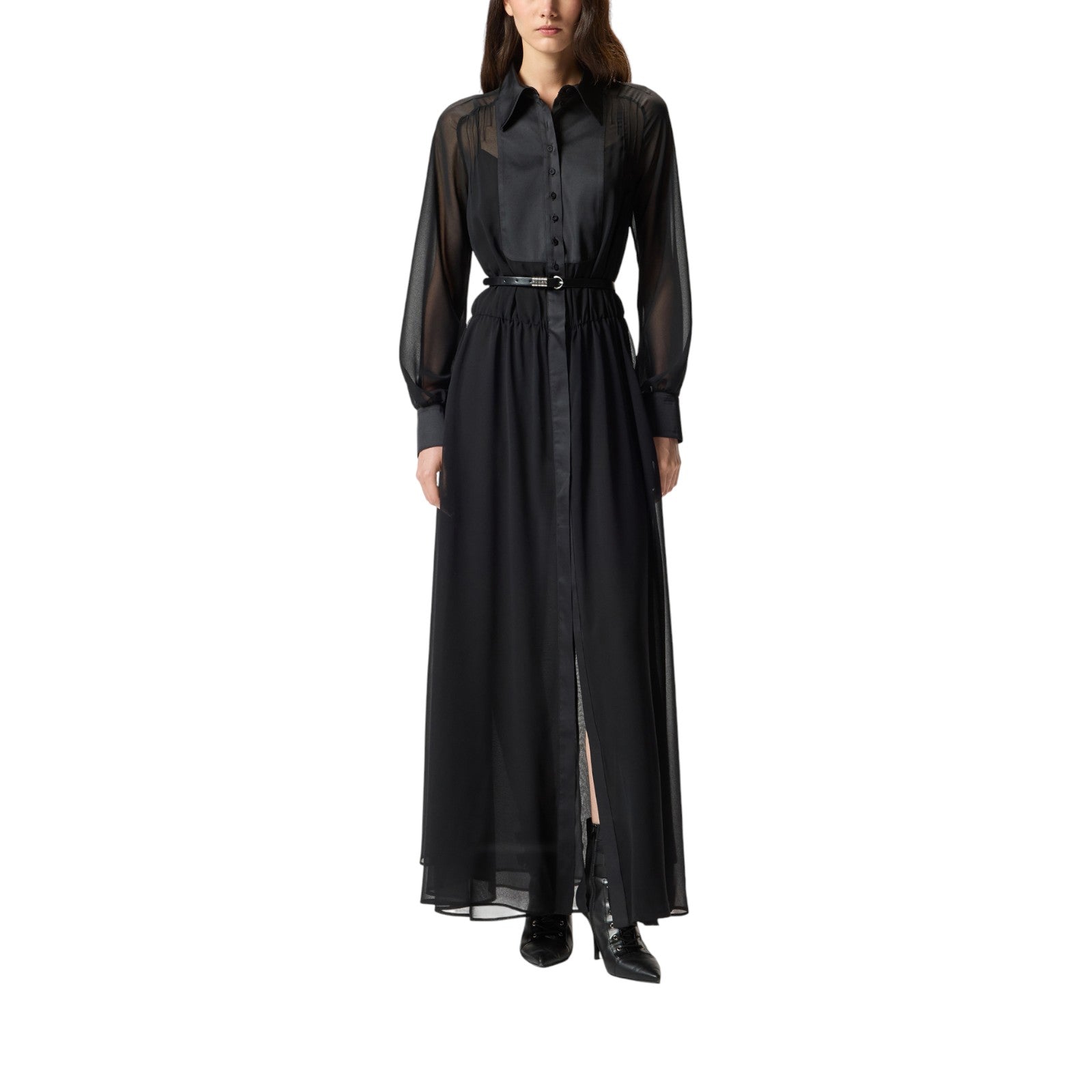Abito donna lungo a camicia in crêpe con cintura