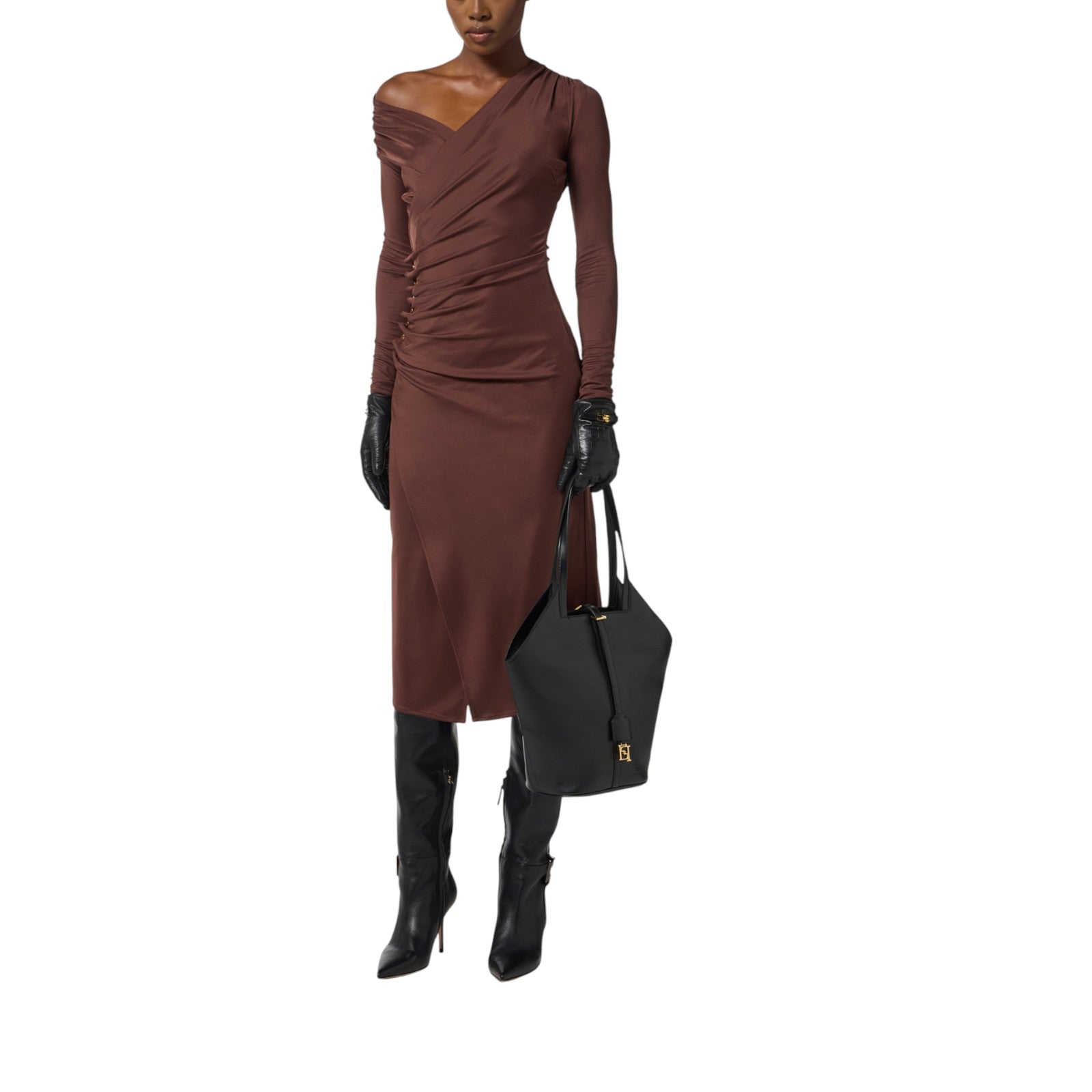 Abito donna in doppio crêpe con dettagli logo