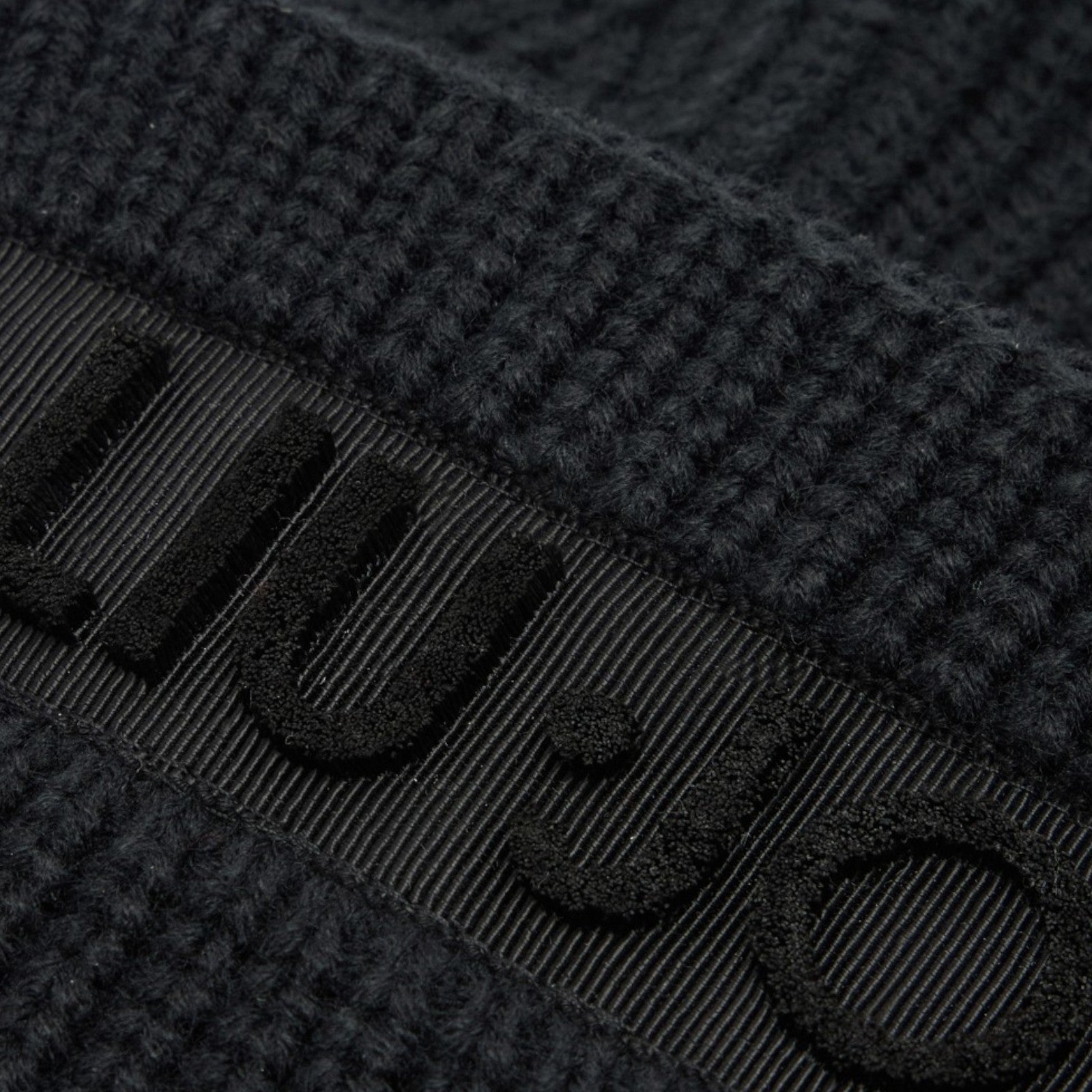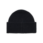 Berretto beanie nero. Realizzato in maglia a coste. Risvolto. Patch logata.