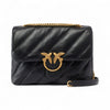 Big Love Bag Puff in morbida nappa con maxi trapuntatura obliqua. La chiusura è completata dall'iconica fibbia in metallo Love Birds Diamond Cut. L'interno è foderato in microfibra scamosciata e comprende tramezza chiusa con zip e tasca a parete. La tracolla combina la classica catena metallica rotonda al pratico spallaccio in nappa.