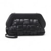 Clutch realizzata in morbida pelle vegana ed ecologica con lavorazione intrecciata. Chiusura magnetica. Dotata di tracolla removibile e regolabile. Fodera in tessuto riciclato. Accessori metallici con finitura oro.