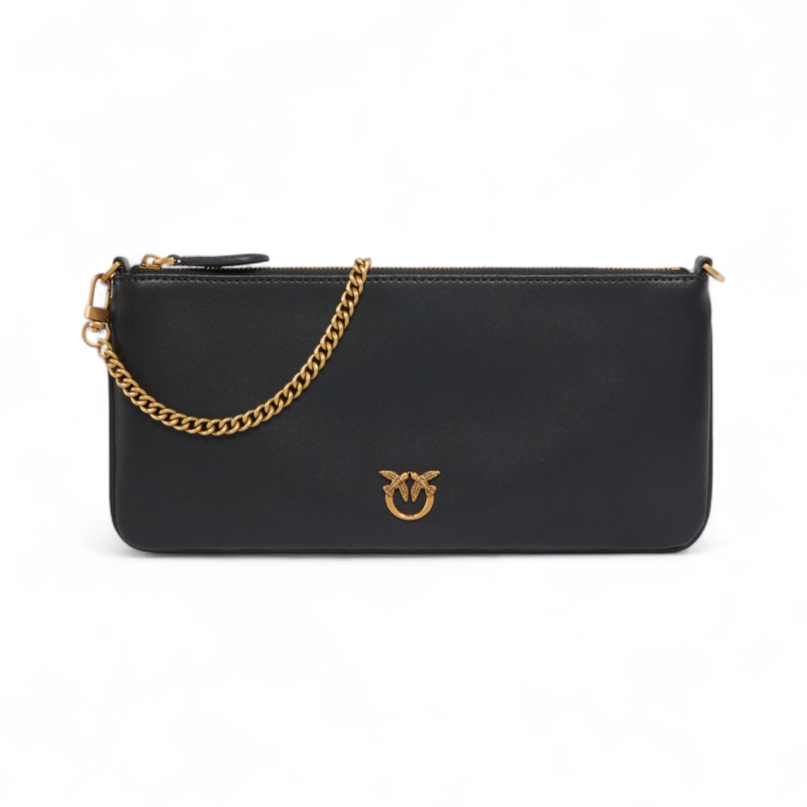 Borsa a tracolla flat dalla linea allungata in morbida pelle mano seta. Personalizzazione con placchetta Love Birds Diamond Cut, galvanica antique gold. Interno foderato in polycotton e tracolla a catena sottile. Chiusura con zip.