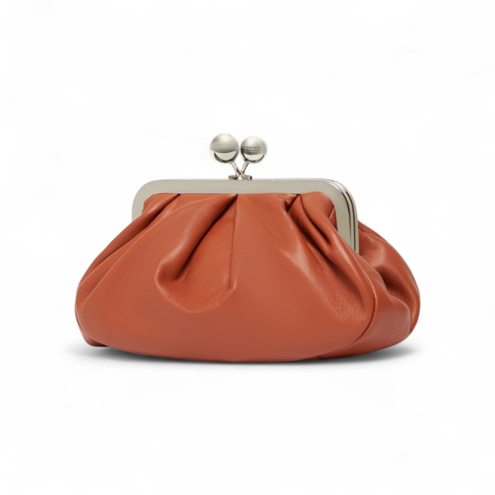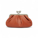 Borsa in morbido montone nappato leggero. Fodera a righe con label personalizzata. Tracolla rimovibile a catena con spallaccio in pelle. Chiusura metallica con sfere personalizzate Weekend Max Mara.