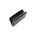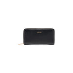 Portafoglio zip around nero. Stampa effetto bottalato. Logo in metallo sul davanti. Scomparto per tessere e carte business. Scomparto per monete con zip. Scomparto per banconote. Chiusura con zip.