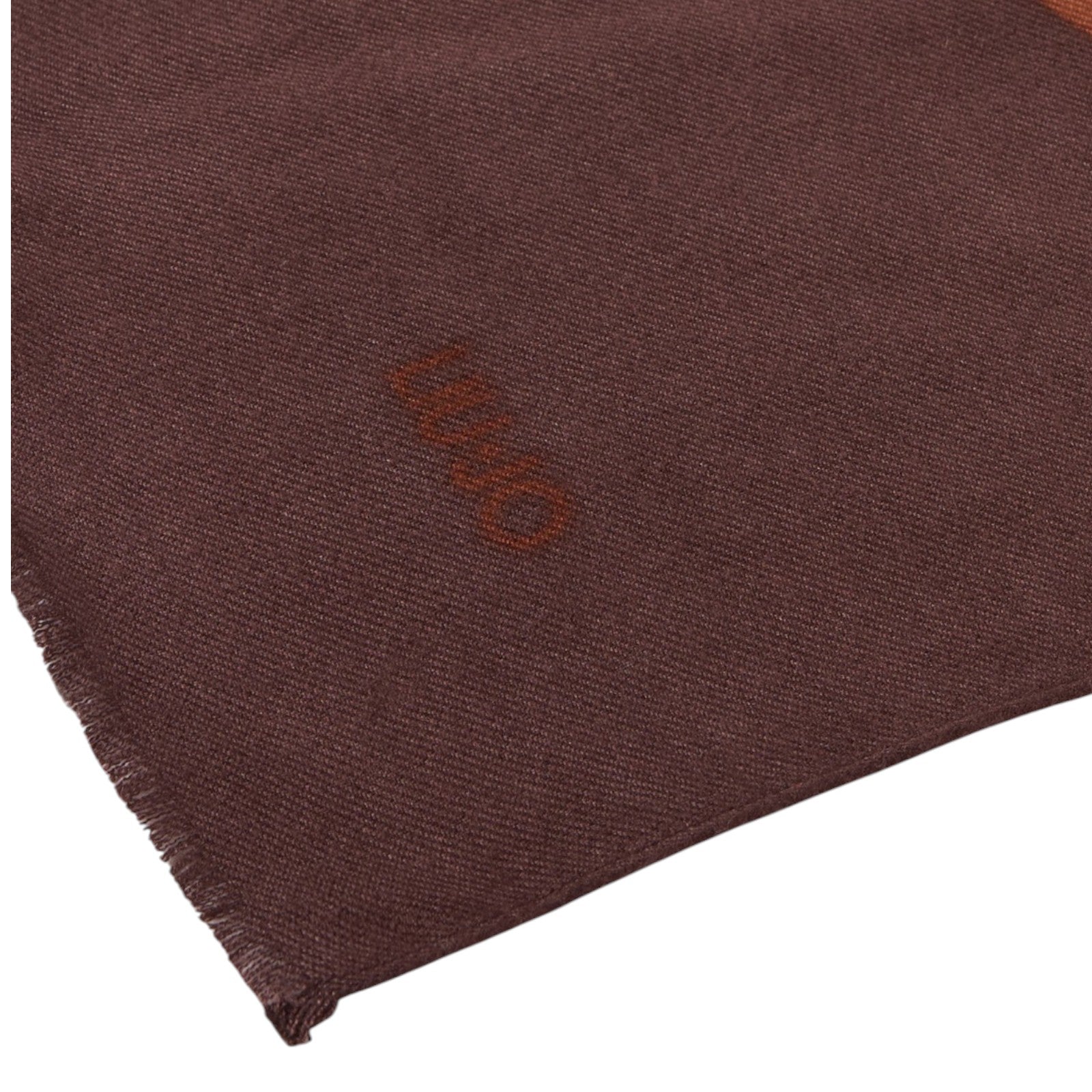 Stola marrone. Realizzata in viscosa. Stampa logo. Bordi sfrangiati. Presenta pochette logata.