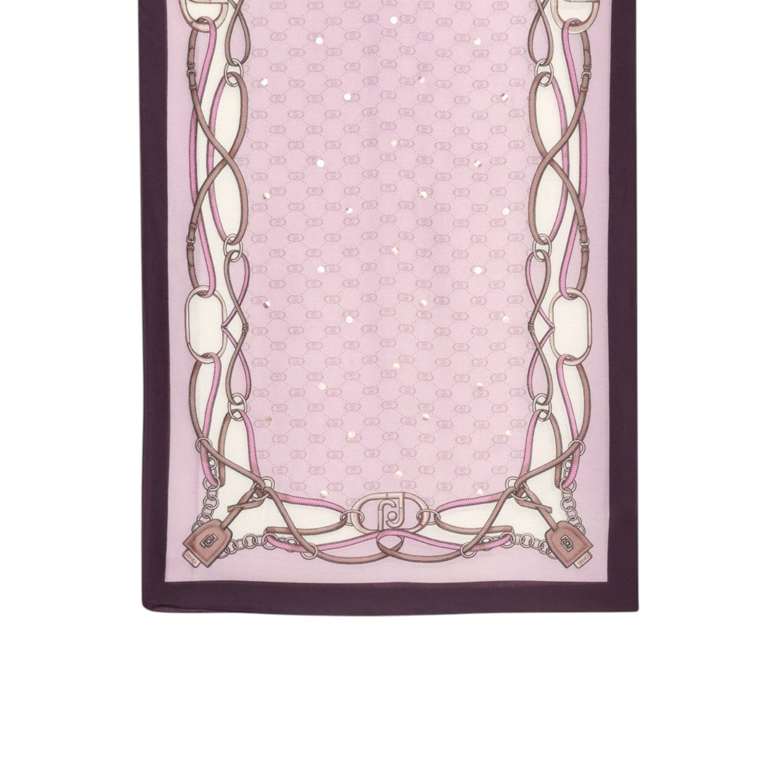 Stola stampata. Motivo grafico con logo. Presenta pochette logata. Misure: 70 x 180 cm.