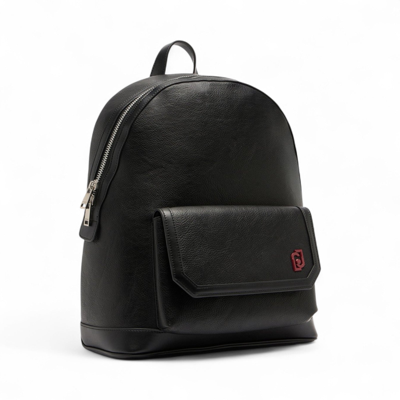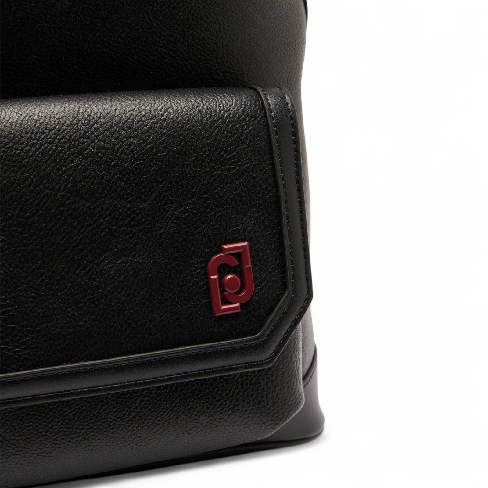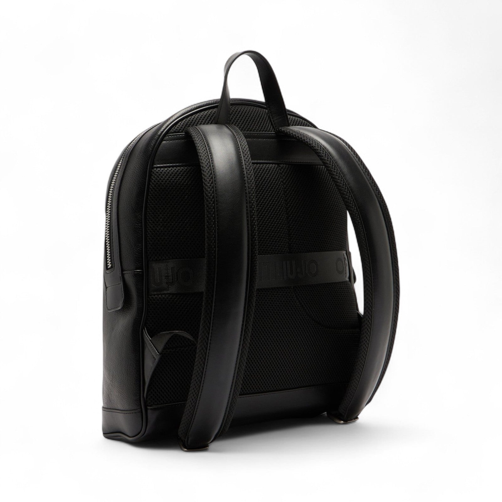 Zaino bottalato. Logo LJ in metallo sul davanti. Tasca frontale con patta. Retro in mesh con nastro logato in gros grain. Spallacci regolabili. Tasca interna con zip. Chiusura con zip.