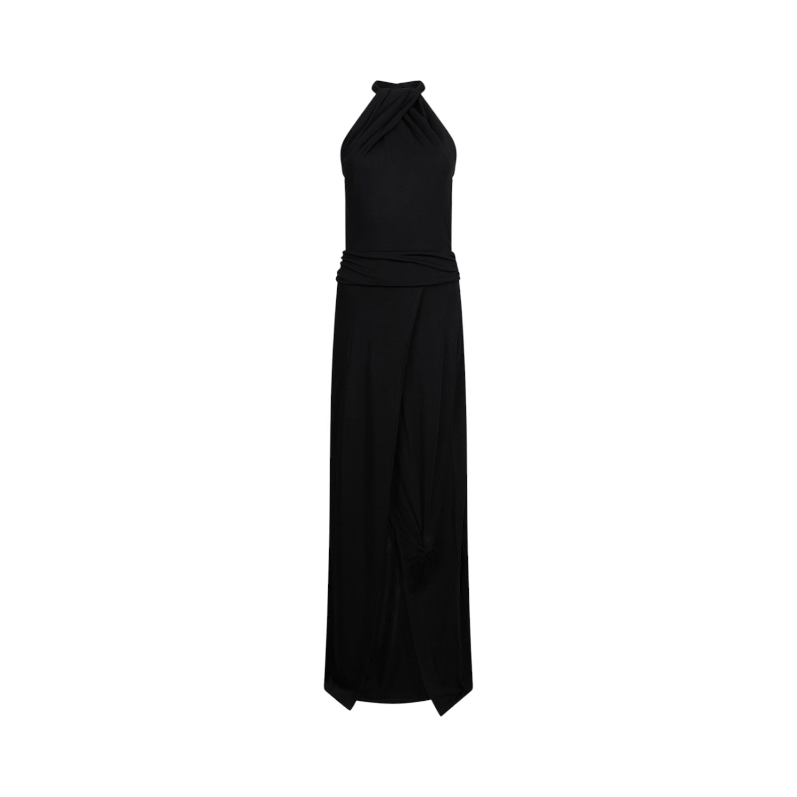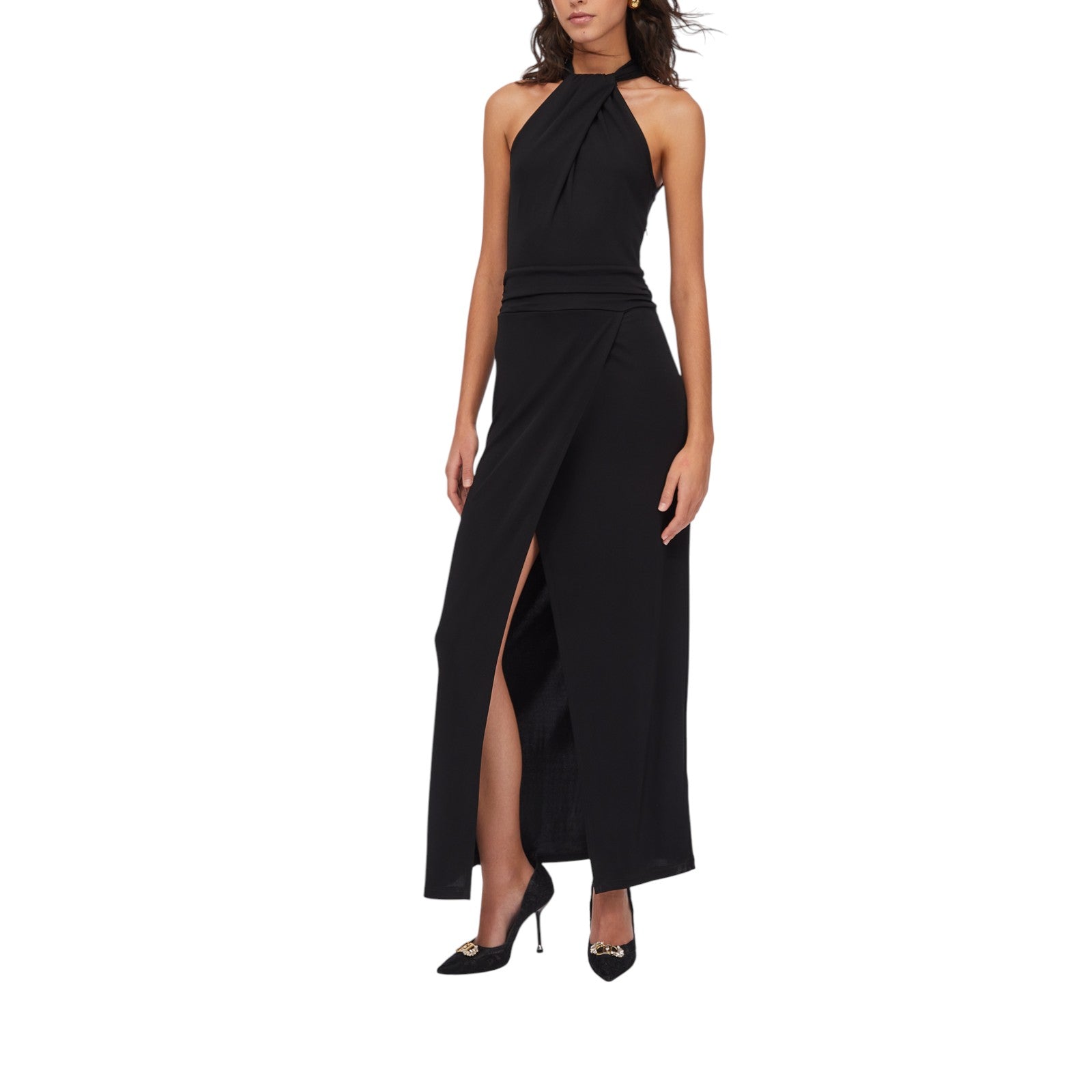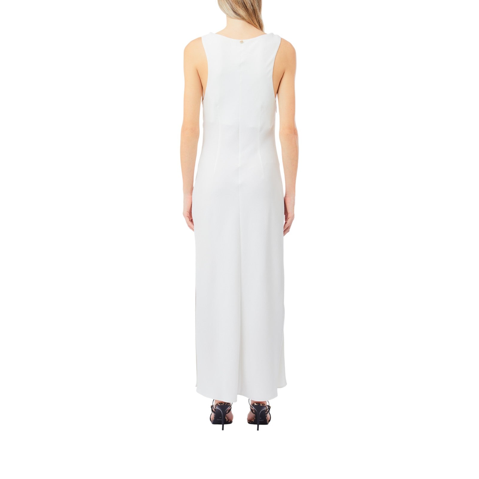 Abito donna lungo bicolore in crêpe con maniche a fiori
