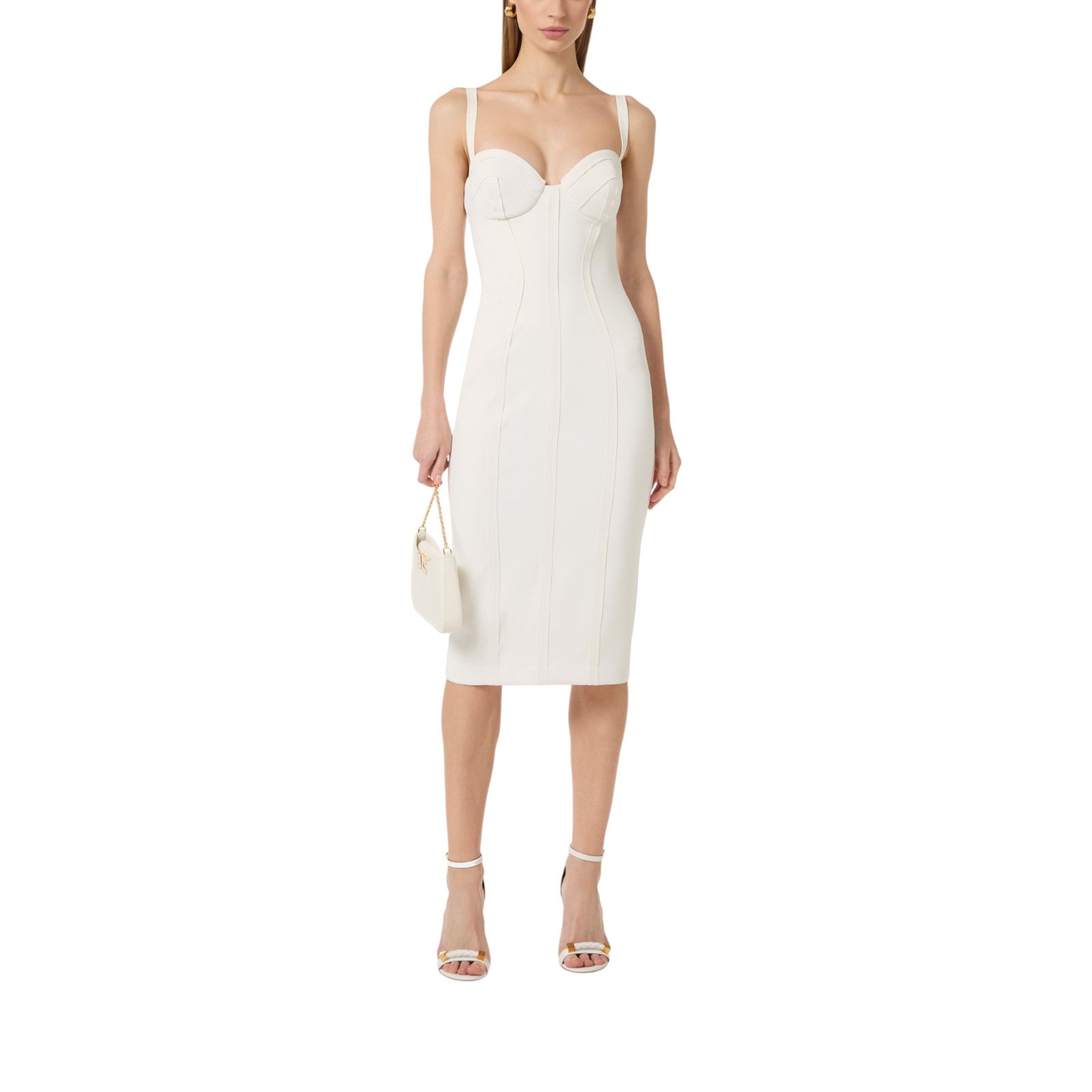 Abito donna in doppio crêpe stretch con elastici