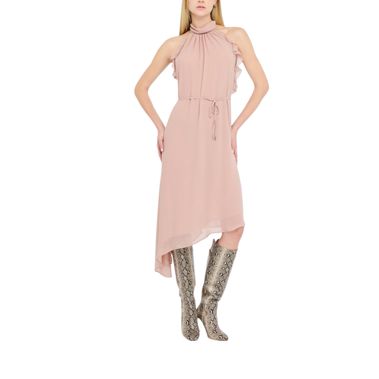 Abito donna in crêpe leggero con tessuto a taglio vivo