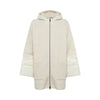 Cappotto in pura lana con inserto alle maniche in duchesse e patch ricamato da cristalli e perline. ha maniche lunghe, chiusura con zip, maxi tasche applicate, tagli rifiniti a rilievo.