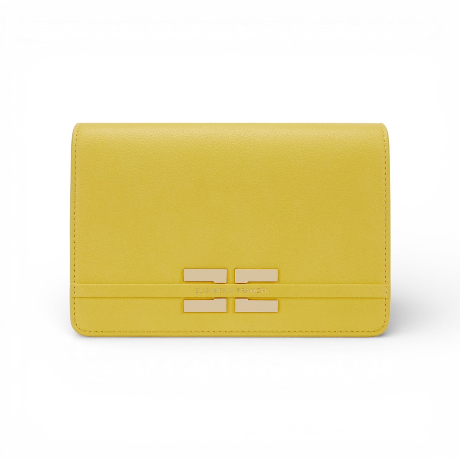 Borsa realizzata in materiale sintetico con texture effetto pelle. Con tracolla in catena groumette, ha shape compatta e lineare ed è impreziosita dalla placca con logo sul davanti.