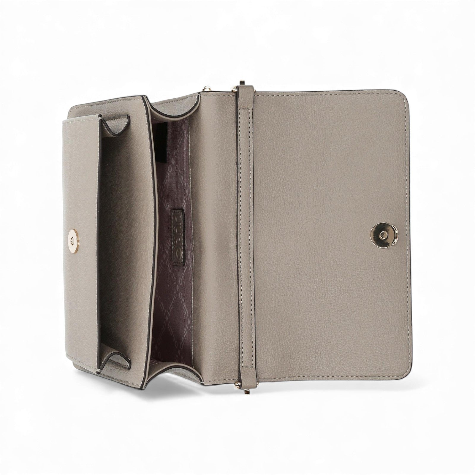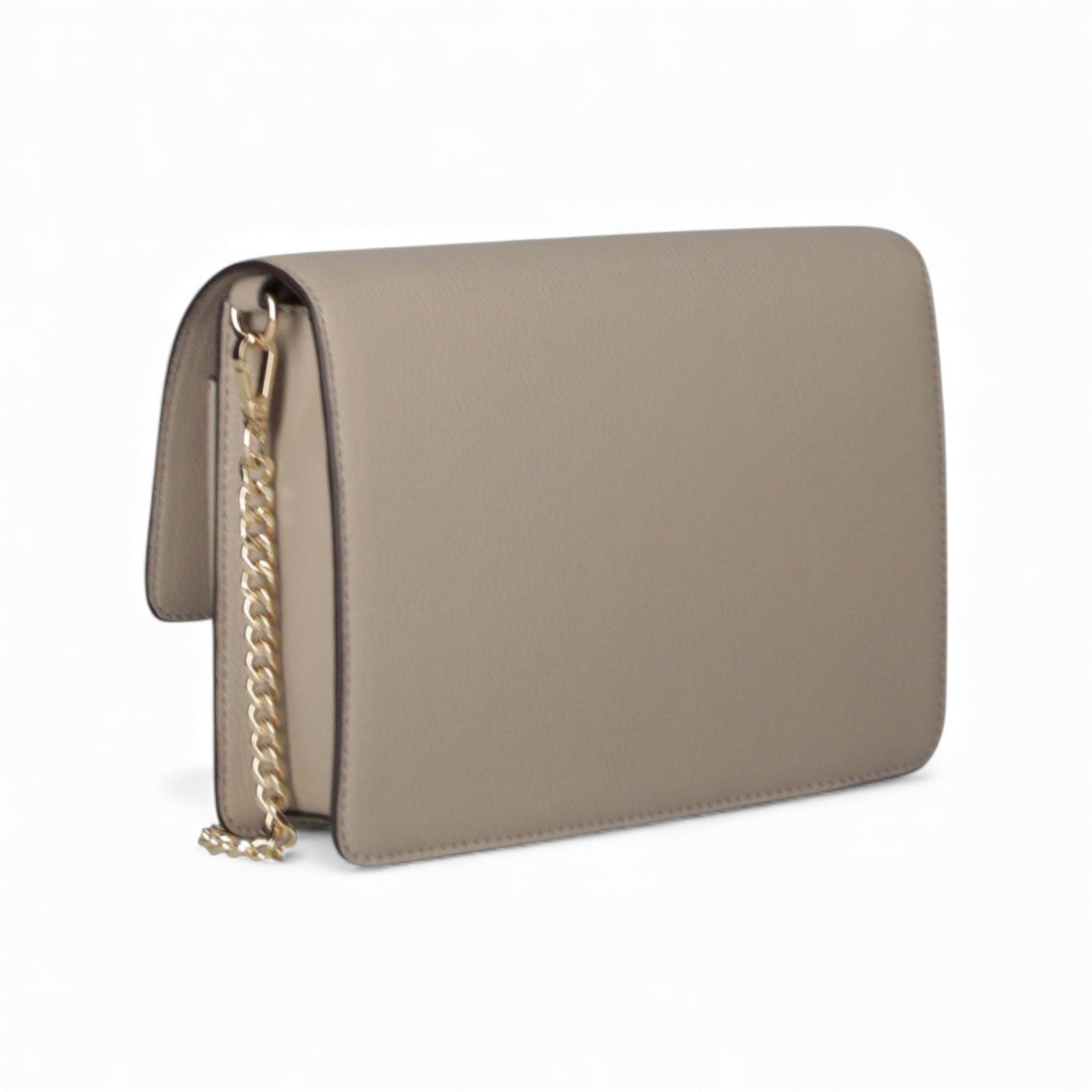 Borsa a tracolla. Stampa effetto bottalato. Logo in metallo. Tracolla rimovibile con catena. Due scomparti. Etichetta interna logata. Fodera interna logata. Chiusura con patta e bottone magnetico.