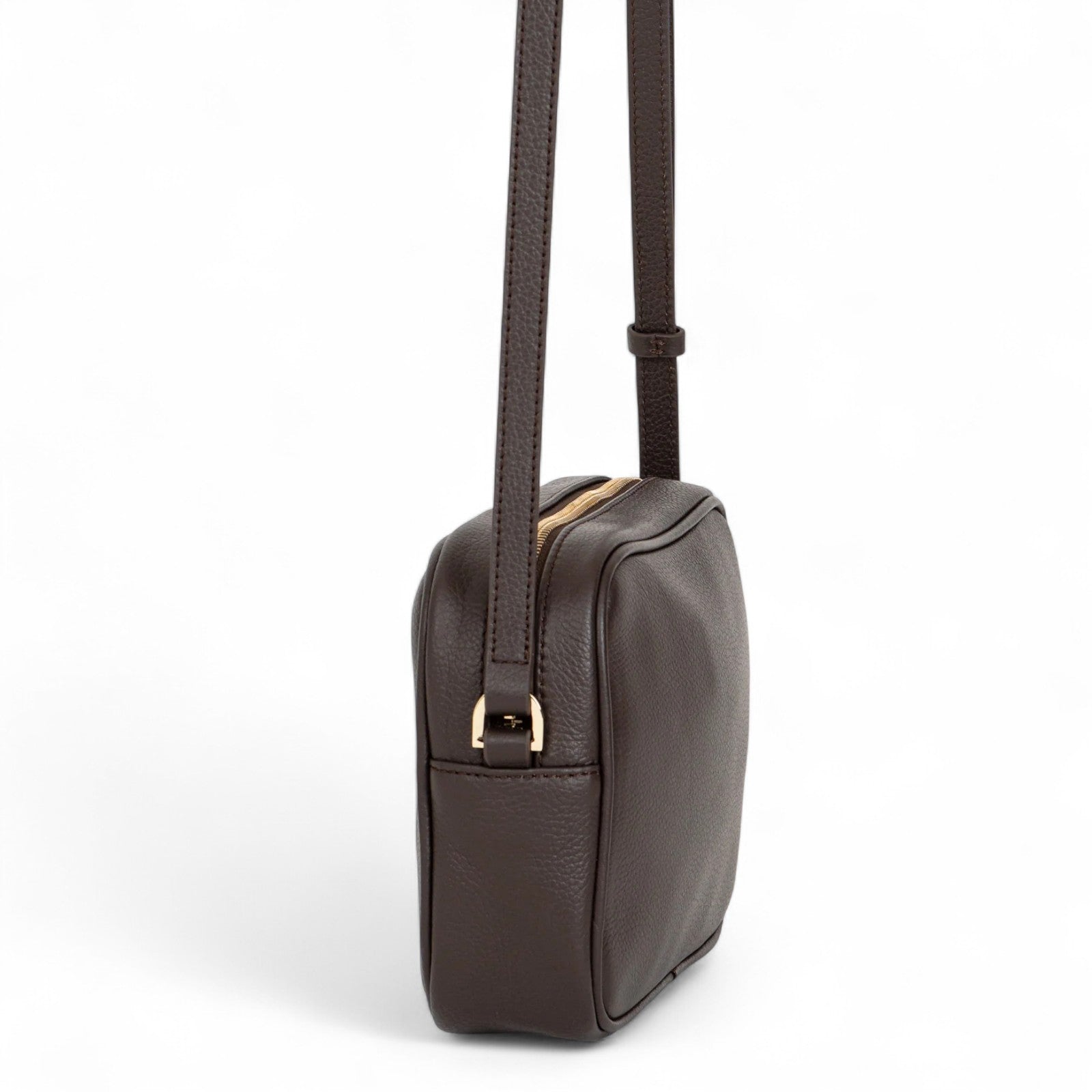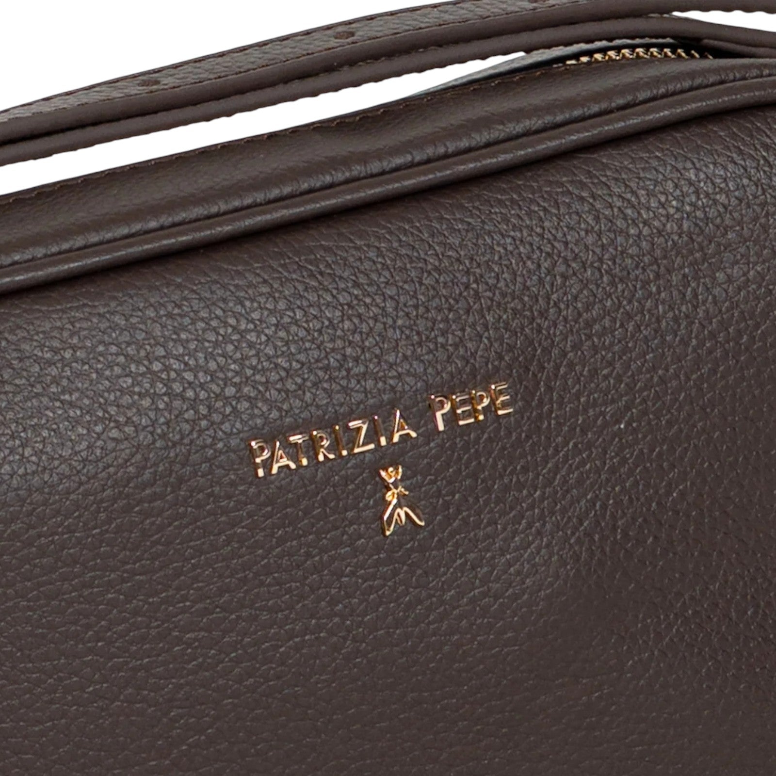Borsa in pelle di vitello martellata. Tracolla regolabile. Tasca interna. Applicazione lettering. Chiusura con zip. Fodera maxi logo.