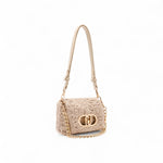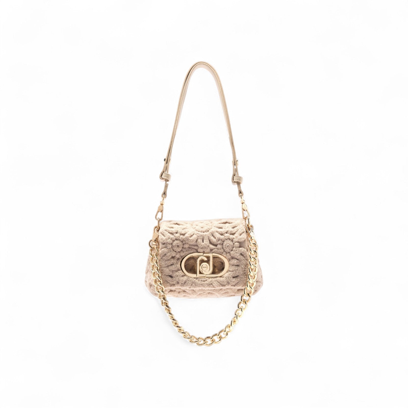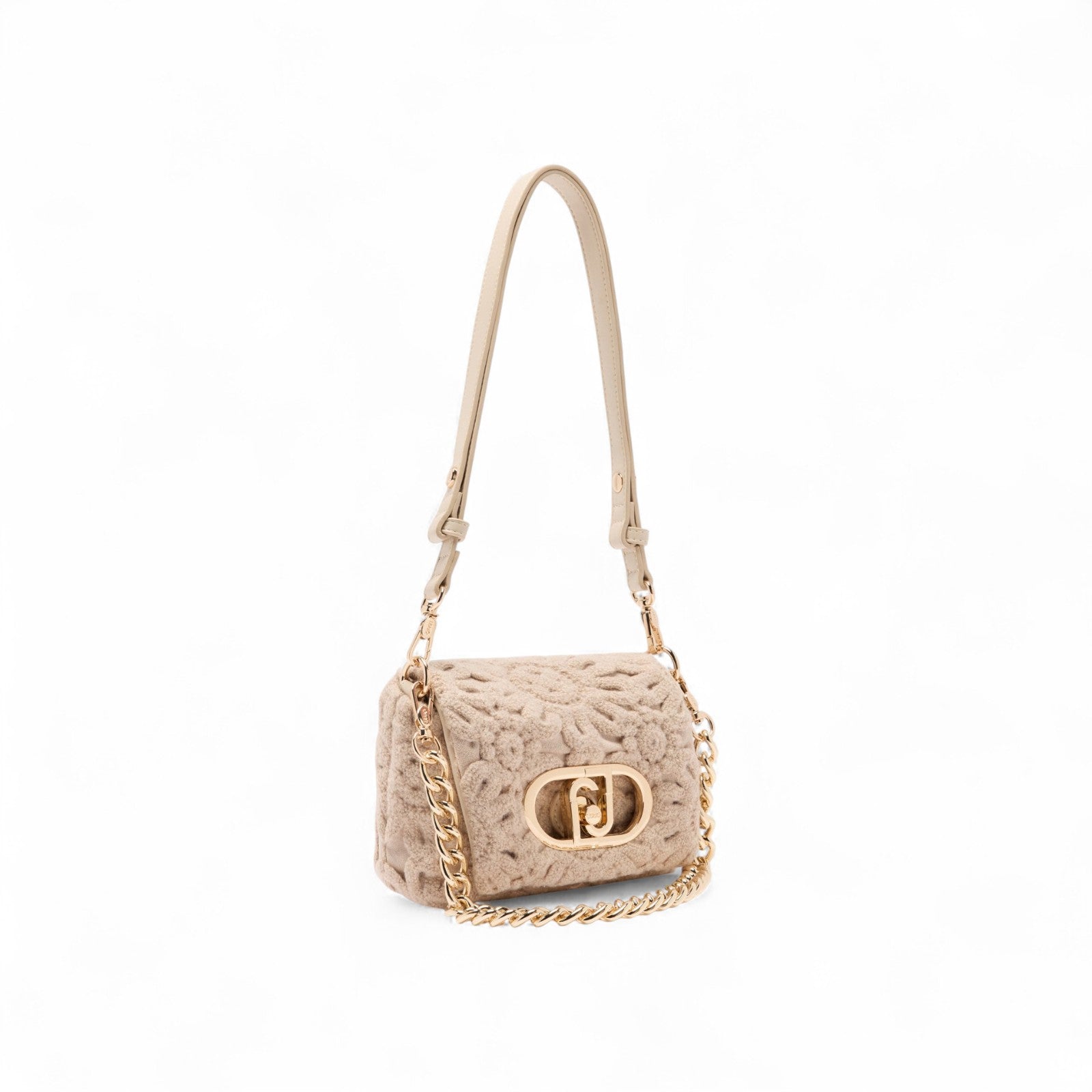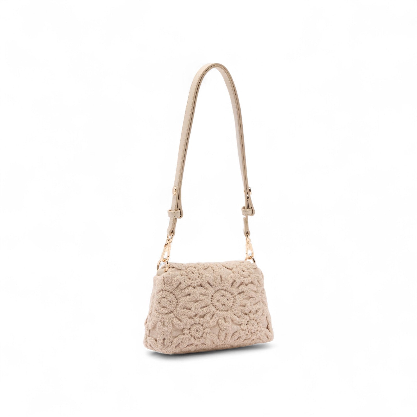 Borsa a tracolla LaPuffy bianca. Realizzata in lana ricamata. Logo in metallo. Comodo manico rimovibile a catena. Tracolla regolabile e rimovibile. Tasca interna con zip. Fodera interna. Chiusura con patta e bottone magnetico. Misure: 19 x 6 x 13 cm.