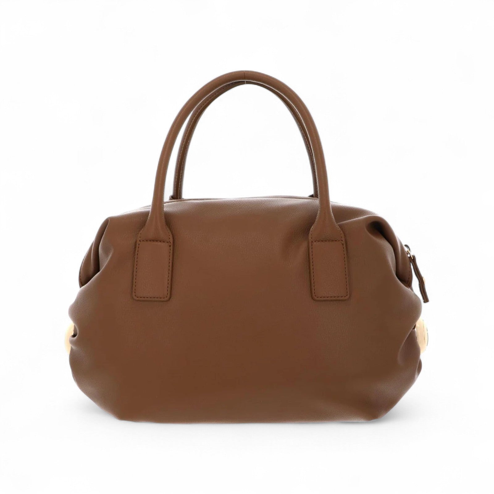 Borsa a mano. Stampa effetto bottalato. Logo in metallo sul davanti. Comodi manici con borchie. Tracolla regolabile e rimovibile. Fodera interna logata. Chiusura con zip.