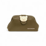 Pouch in ecopelle liscia con chiusura magnetica con orsetto e logo metallico. Catenella removibile e fodera interna in cotone con tasca.