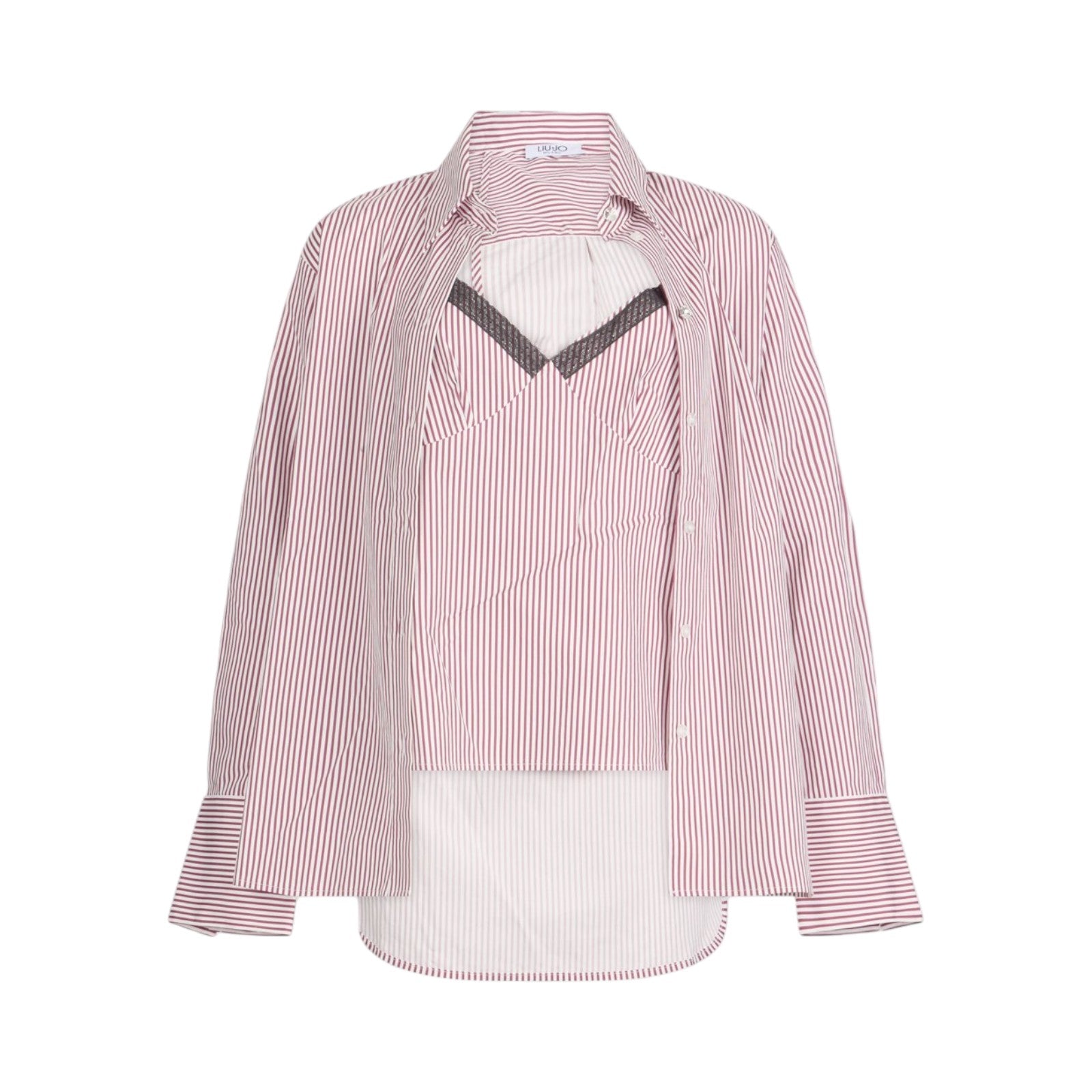 Camicia in popeline di cotone. Motivo a righe all over. Colletto classico. Maniche lunghe. Polsi con bottone. Logo in metallo sul retro. Chiusura con bottoni. Presenta top in abbinamento.