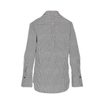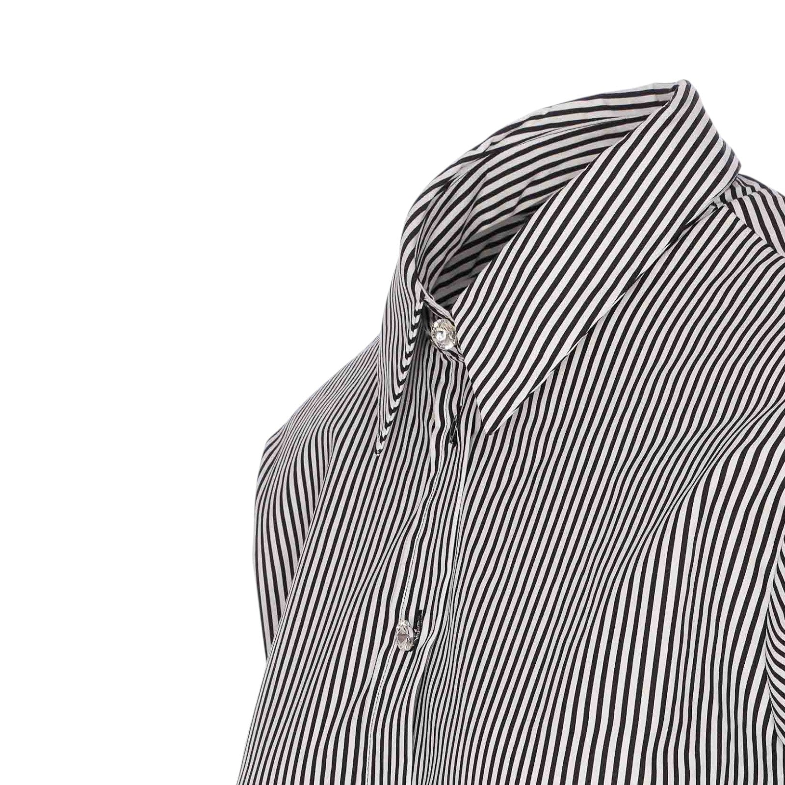 Camicia in popeline di cotone. Motivo a righe all over. Colletto classico. Maniche lunghe. Polsi con bottone. Logo in metallo sul retro. Chiusura con bottoni. Presenta top in abbinamento. La modella è alta 179 cm e indossa la taglia 40.