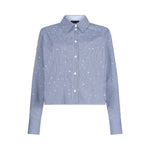 Camicia bianca. Realizzata in popeline di cotone. Strass applicati. Colletto classico. Maniche lunghe. Polsi con bottone gioiello. Chiusura con bottoni. La modella è alta 178 cm e inossa la taglia 40.
