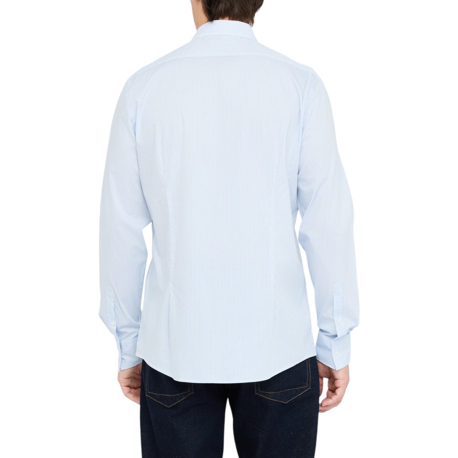 Camicia in cotone stretch. Stampa a righe all over. Colletto alla francese. Maniche lunghe. Polsi con bottoni. Chiusura con bottoni.