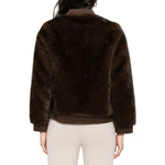 Bomber con bordo a coste marrone, tasche frontali rifinitura a coste, girocollo, chiusura frontale nascosta.