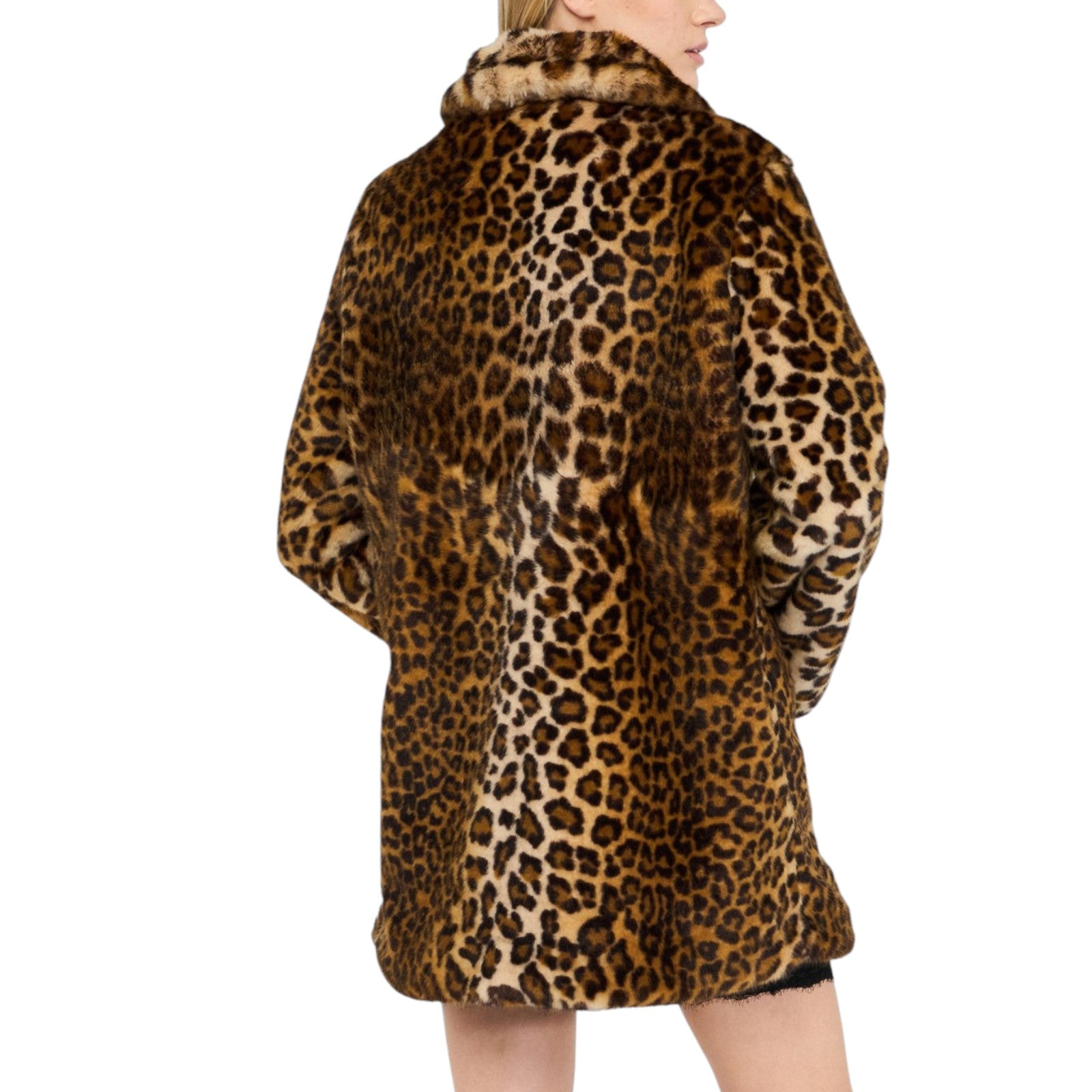 Cappotto in pelliccia sintetica. Motivo animalier all over. Collo a camicia. Tasche sui lati. Chiusura coperta con bottoni. Fodera interna. La modella è alta 180 cm e indossa la taglia 40.
