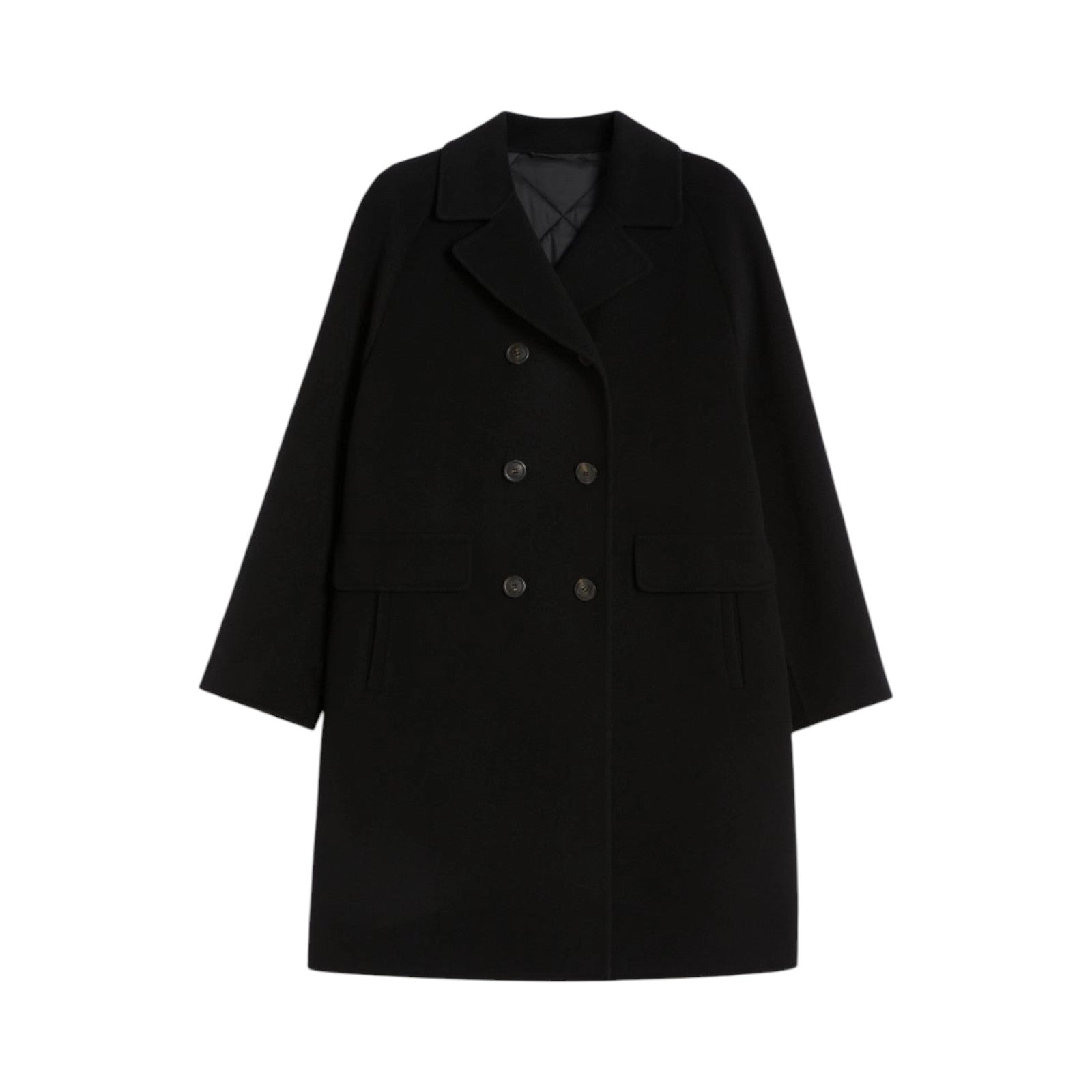 Cappotto midi doppiopetto con retro in tela antigoccia, imbottito in Luxepad Ultra Fine Insulating Technology Camel-Silk Blend Edition e trapuntato a rombi. Linea dritta. Collo a rever piccolo. Maniche lunghe raglan. Chiusura con bottoni a vista. Tasche a filetto verticale con patta applicata sul davanti.