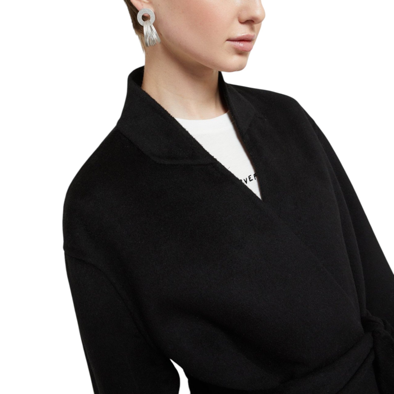 Cappotto midi in misto lana con scollo kimono e cintura.