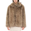 Giacca in pelliccia sintetica. Morbido colletto. comode tasche. Interno foderato. Chiusura con bottoni a pressione. La modella è alta 178 cm e inossa la taglia 40.