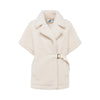 Gilet in faux fur effetto montone, regolabile in vita con cinturino in tono. Caldo e avvolgente, ha maxi revers, maniche corte a kimono, tasche inserite ai fianchi. Perfetto per creare outfit di stagione che non passano inosservati.